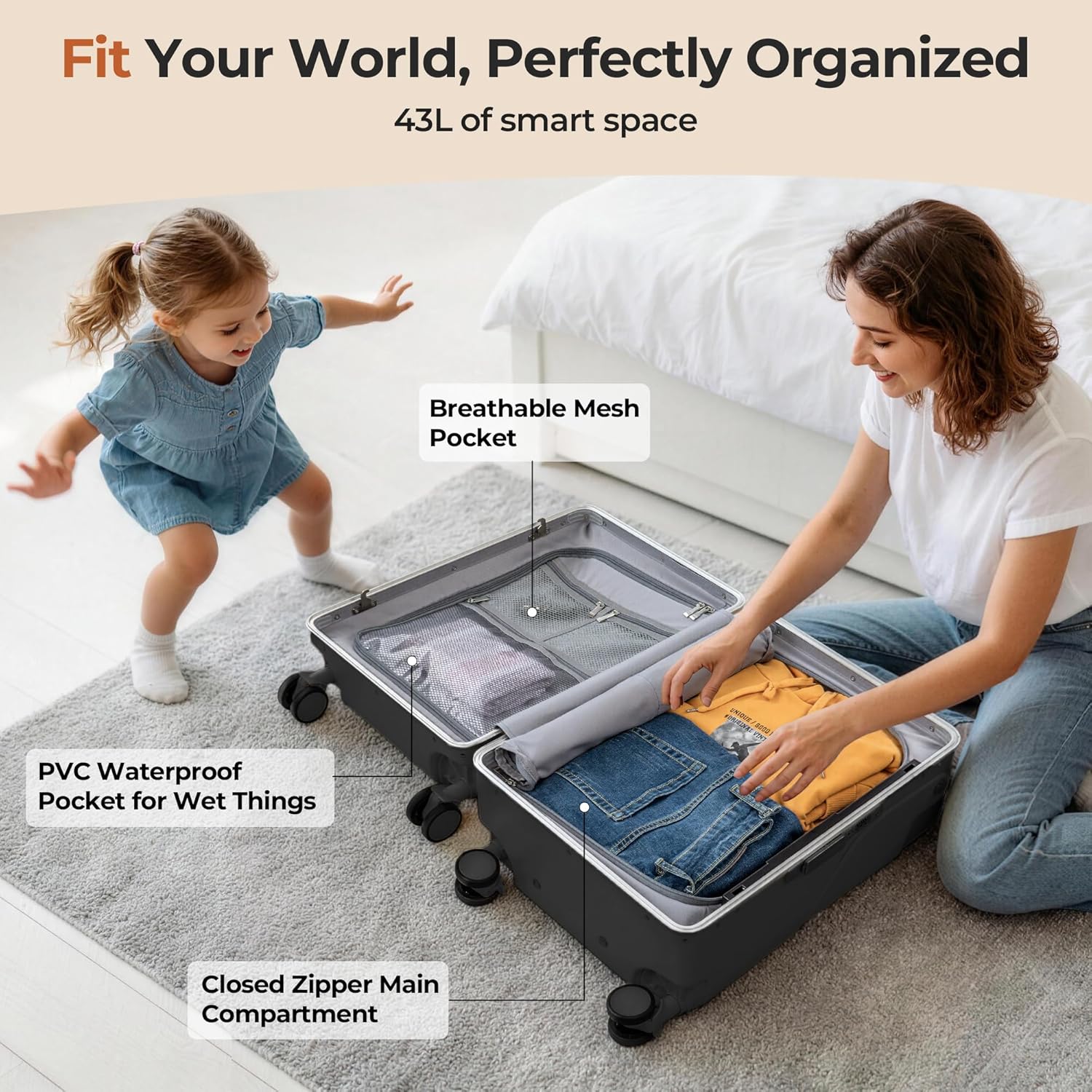 Engineered with busy parents and frequent travelers in mind, this luggage supports multi-generational use without adding bulk to your carry-on items. Its silent 360° spinner wheels allow smooth maneuvering through crowded terminals, while the integrated locking system enhances security. The foldable seat design maximizes space efficiency, making it a practical addition to any travel routine.