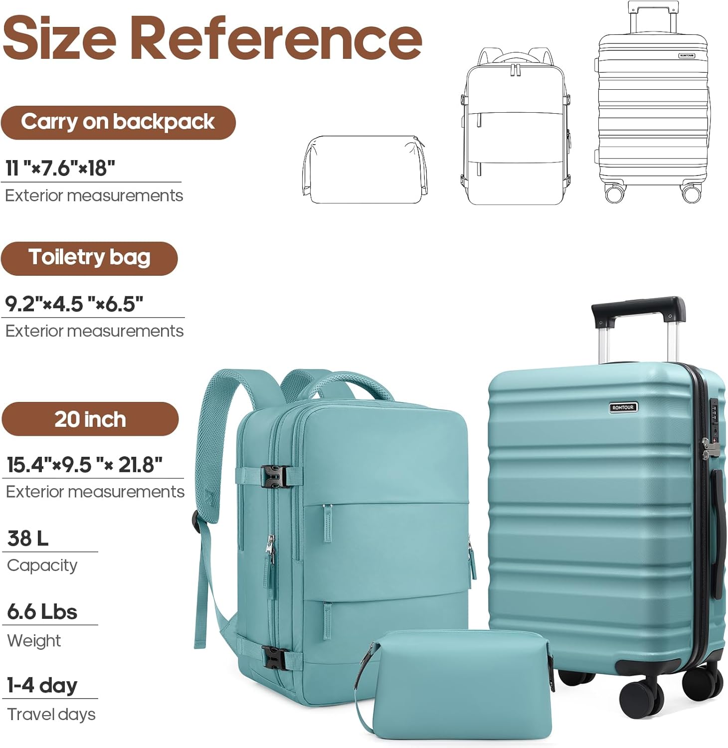 【A Versatile 3 – Piece Journey Set】This set features a 20 – inch carry – on suitcase, a helpful journey backpack, and a sensible toiletry bag. You may simply mix them based on your journey wants, preserving all of your necessities effectively – organized and accessible.