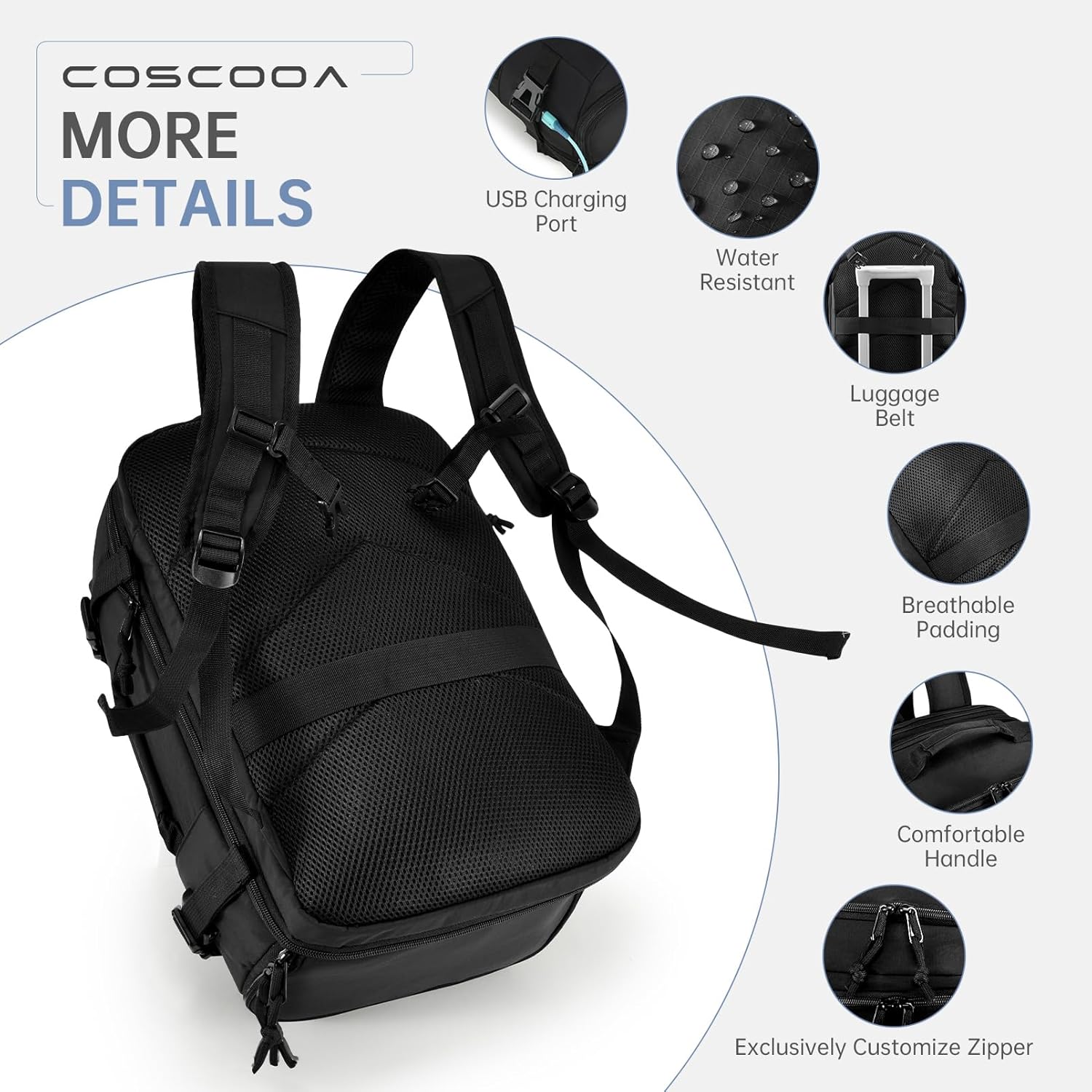 【Airline Accepted Private Merchandise Journey Backpack】The size of the COSCOOA journey backpack earlier than enlargement are 40x30x20cm/16x12x8inch,after enlargement are 40x30x25cm/16x12x10inch,enlargement 30L to 35L.As a private iem bag, It’s permitted by most airways together with Ryanair, United Airways and Frontier Airways.