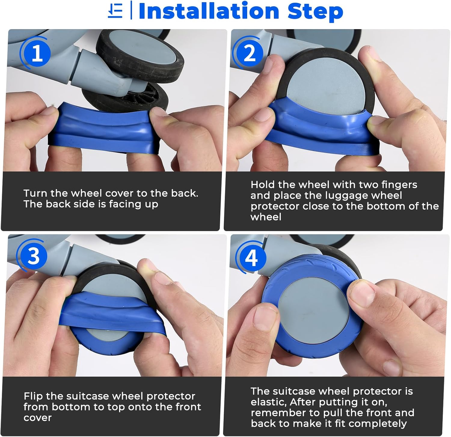 [Fits Most Suitcases] These suitcase covers for baggage wheel are appropriate for suitcases with wheel diameter between 2.0-2.4″(50-60mm),the gap between the bags wheel and wheel base fender must be greater than 0.07″(1.8mm),and the gap between the bags wheel and axle must be greater than 0.05″(1.2mm) ,This Suitcase wheel cowl for baggage Appropriate for 4×2 double wheels, not appropriate for 4×1 single wheels baggage