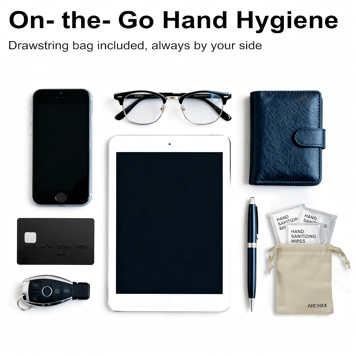 With 100 wipes included, this pack delivers long-lasting value, making it suitable for personal use, household needs, or even small business settings. The drawstring bag keeps everything organized and easily accessible, whether stored at home, on a desk, or packed for a trip. These wipes are especially useful during cold and flu season, after handling public surfaces, or before eating—anytime a quick, trustworthy cleanse is needed.