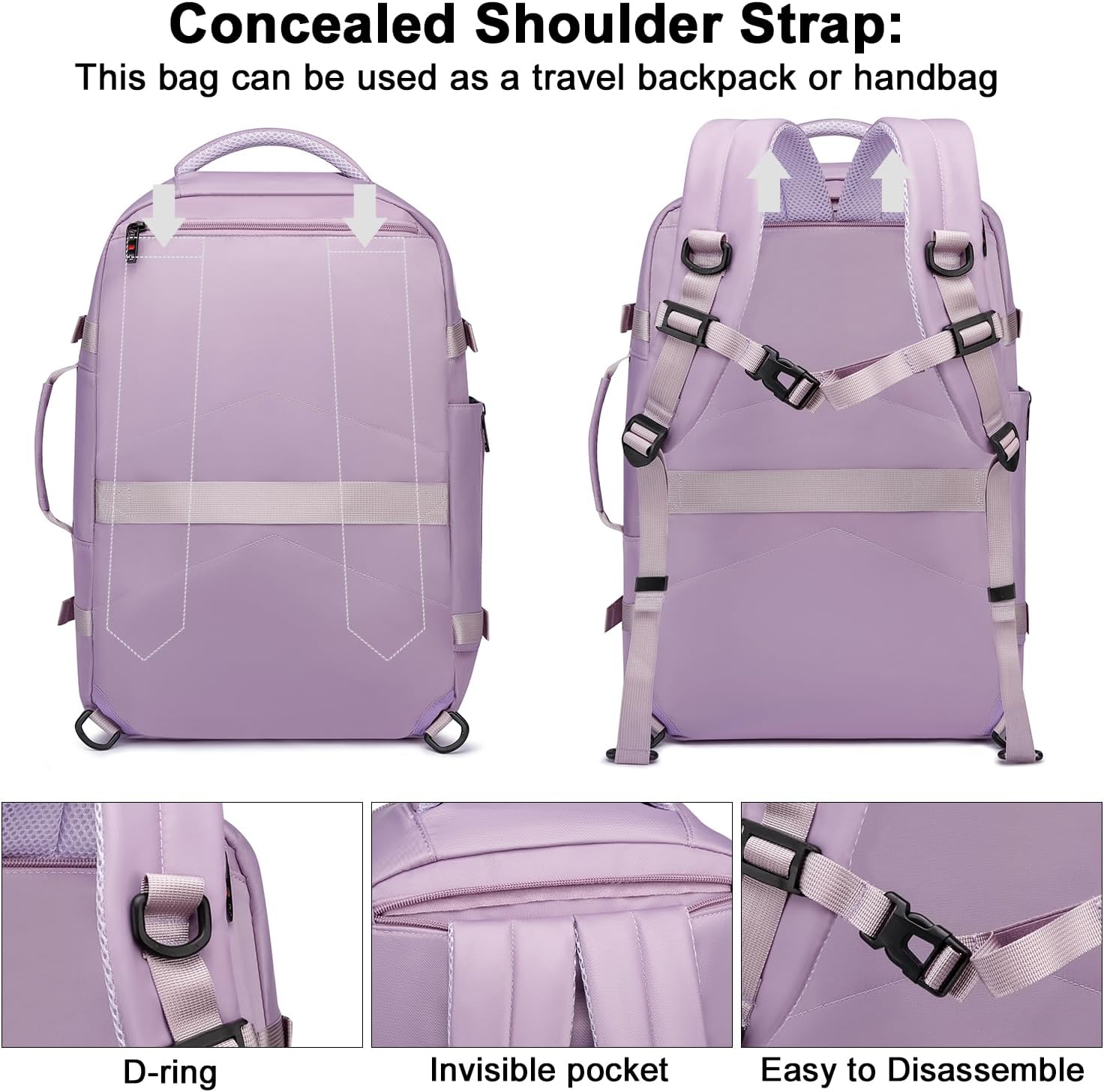 【Ingenious Construction】: Primary baggage bag + laptop computer particular bag + entrance small bag + water bottle / umbrella bag mouth + hidden shoulder strap design + entrance panel night time journey reflective seat belt