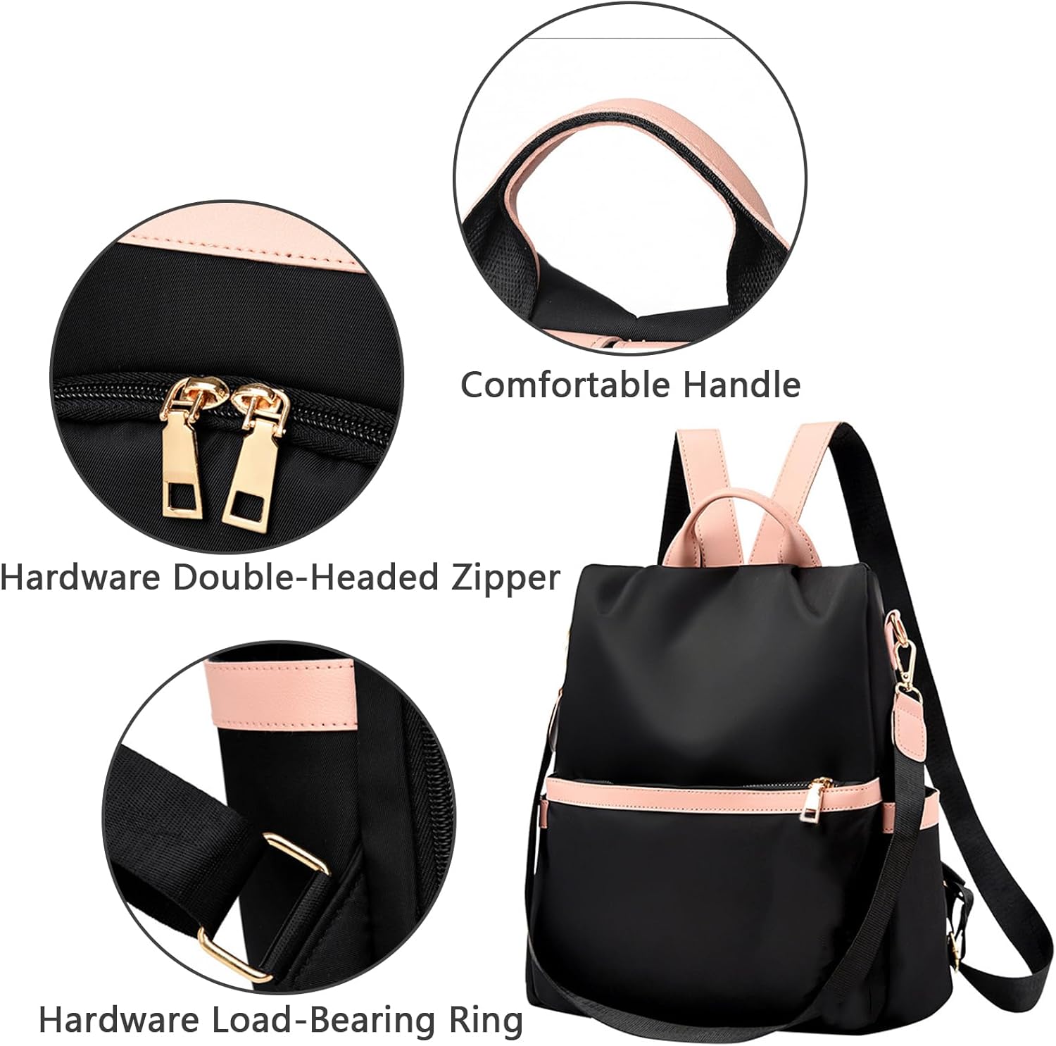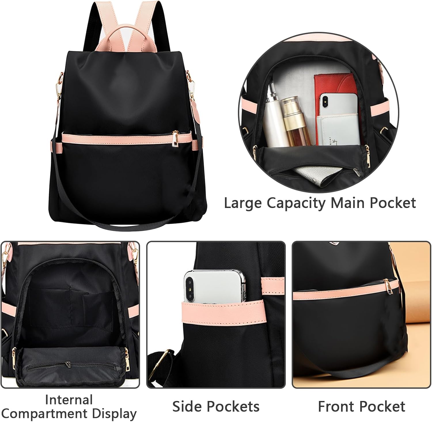 This listing includes one (1) black backpack purse as displayed in the provided images. Please handle with care to avoid excessive exposure to moisture, which may affect the outer oxford cloth over time. While the material offers moderate water resistance, prolonged contact with liquids can lead to staining or weakening of fibers.