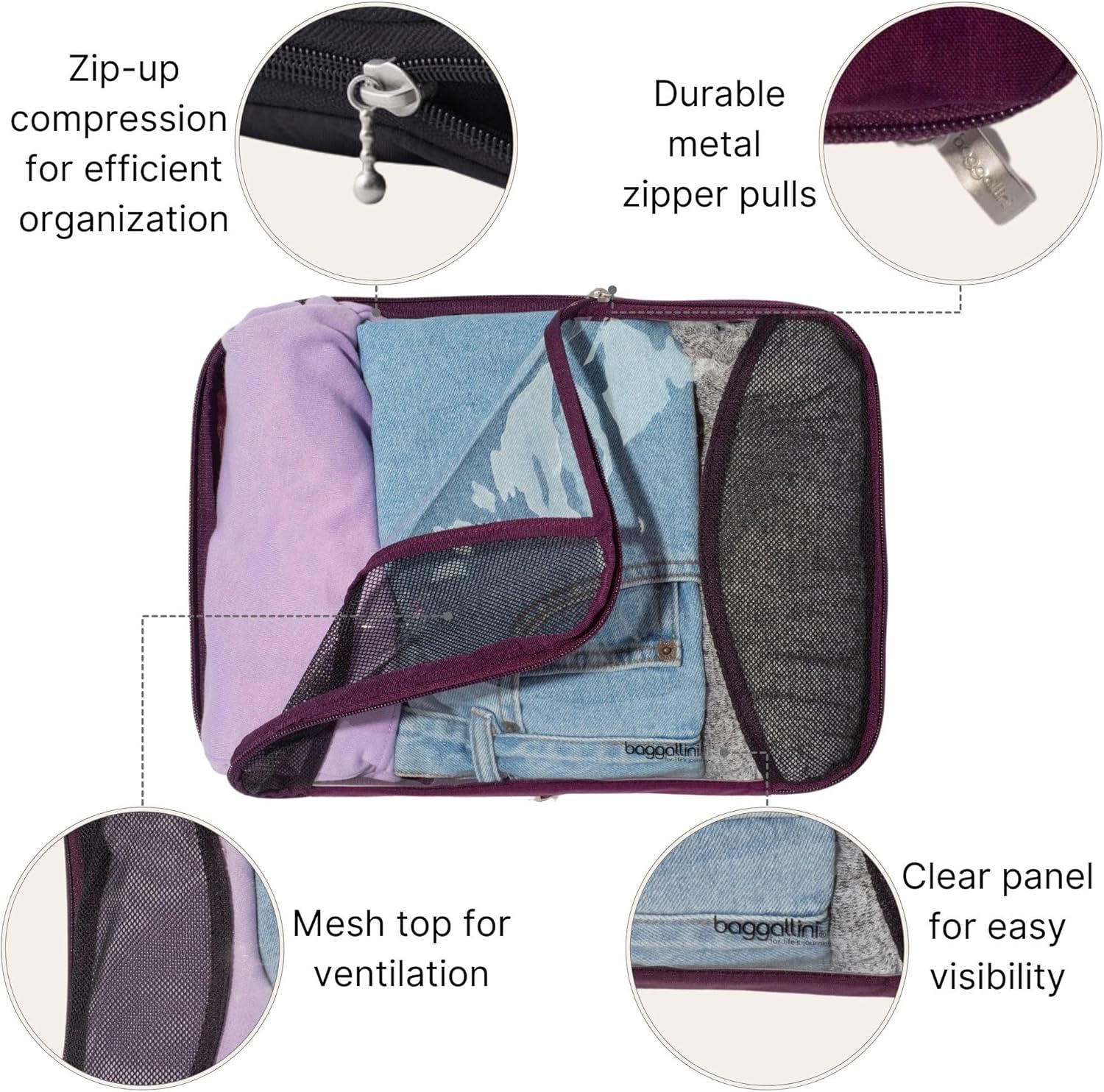 - These cubes are designed primarily for integration with Baggallini luggage models. While they may fit other brands physically, optimal functionality and space efficiency are only guaranteed with compatible Baggallini products.