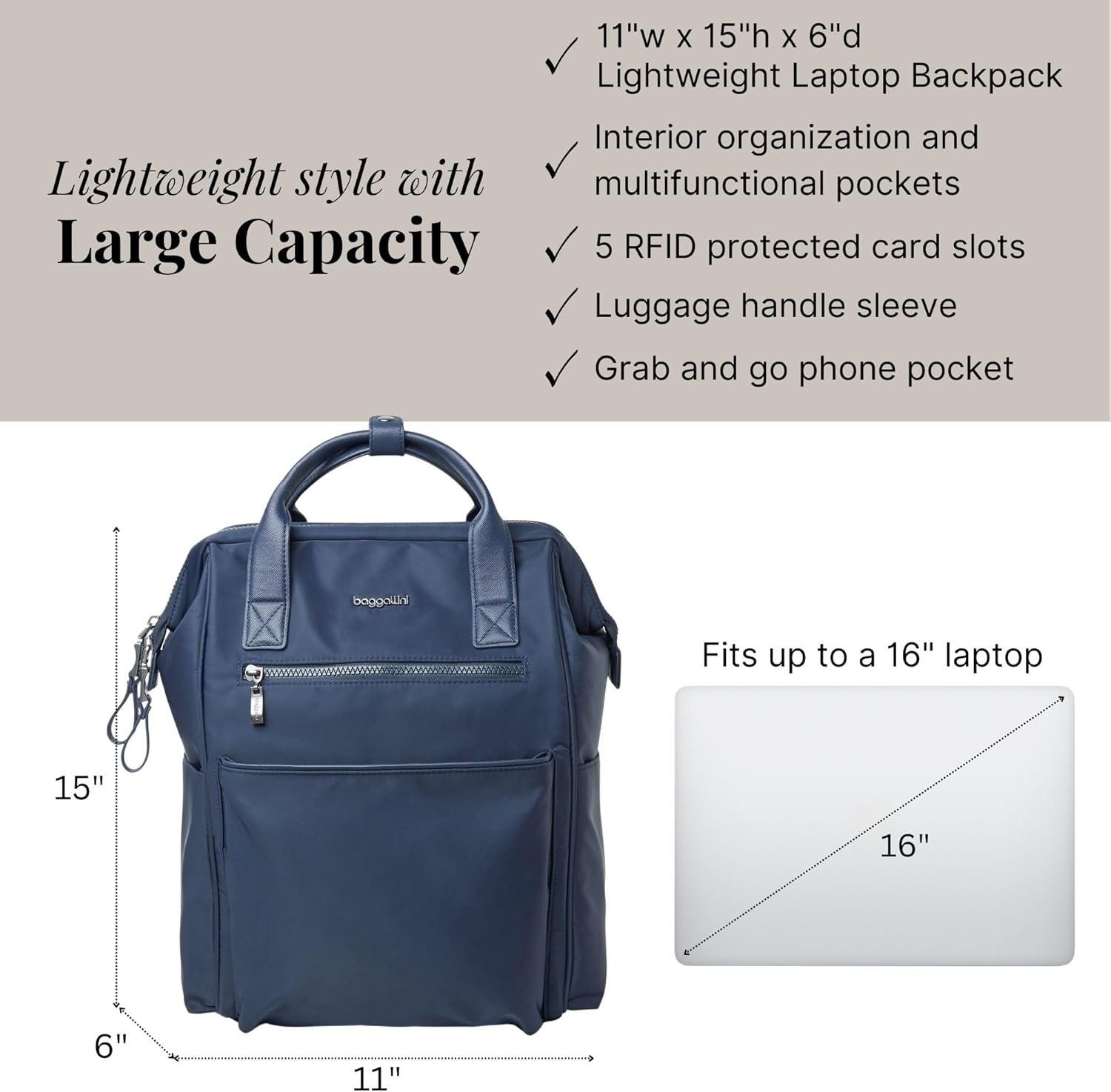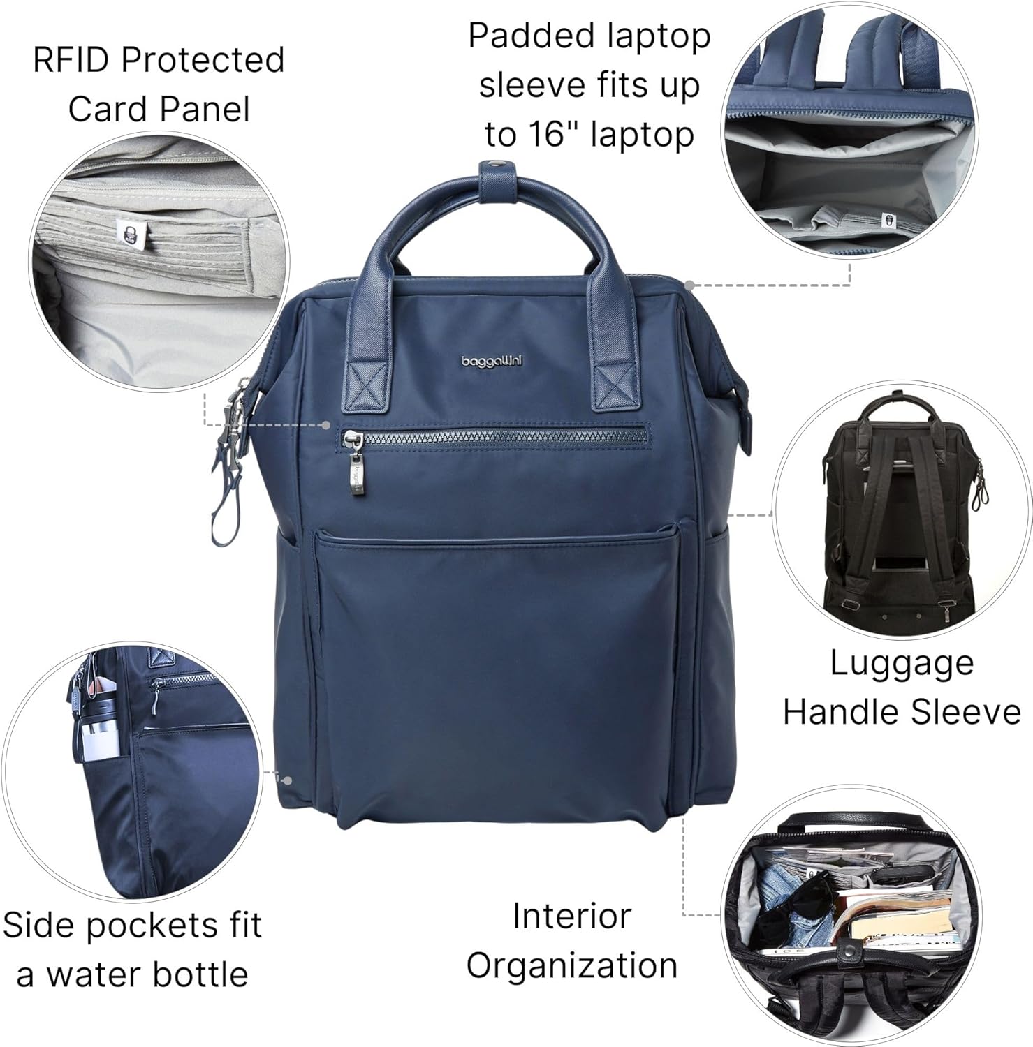 Baggallini Soho Backpack – Travel Laptop Backpack for Women – Lightweight Water-Resistant Luggage Bag, French Navy
