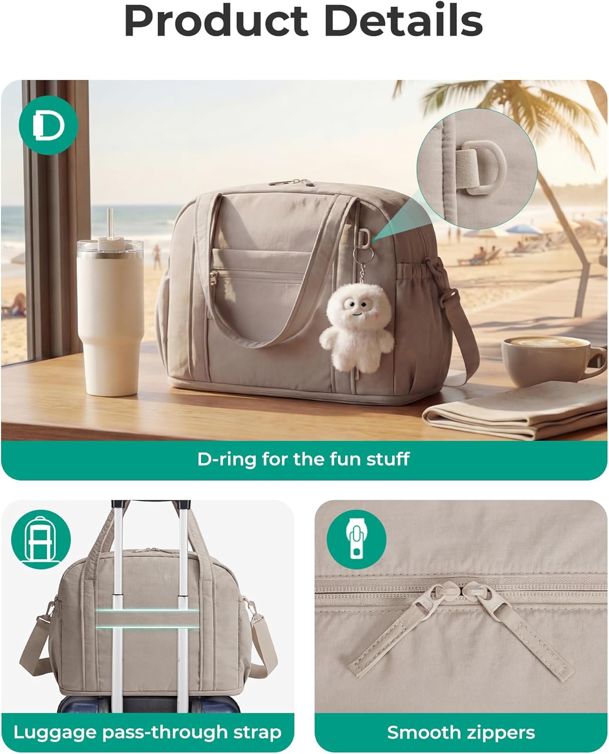 • Lightweight & Durable Construction: Built with high-quality, water-resistant fabric, this duffel remains easy to carry despite its sturdy build. It’s resistant to everyday wear and tear—whether you’re navigating airport terminals, gym showers, or hotel rooms. The lightweight design also reduces shoulder fatigue during extended use.