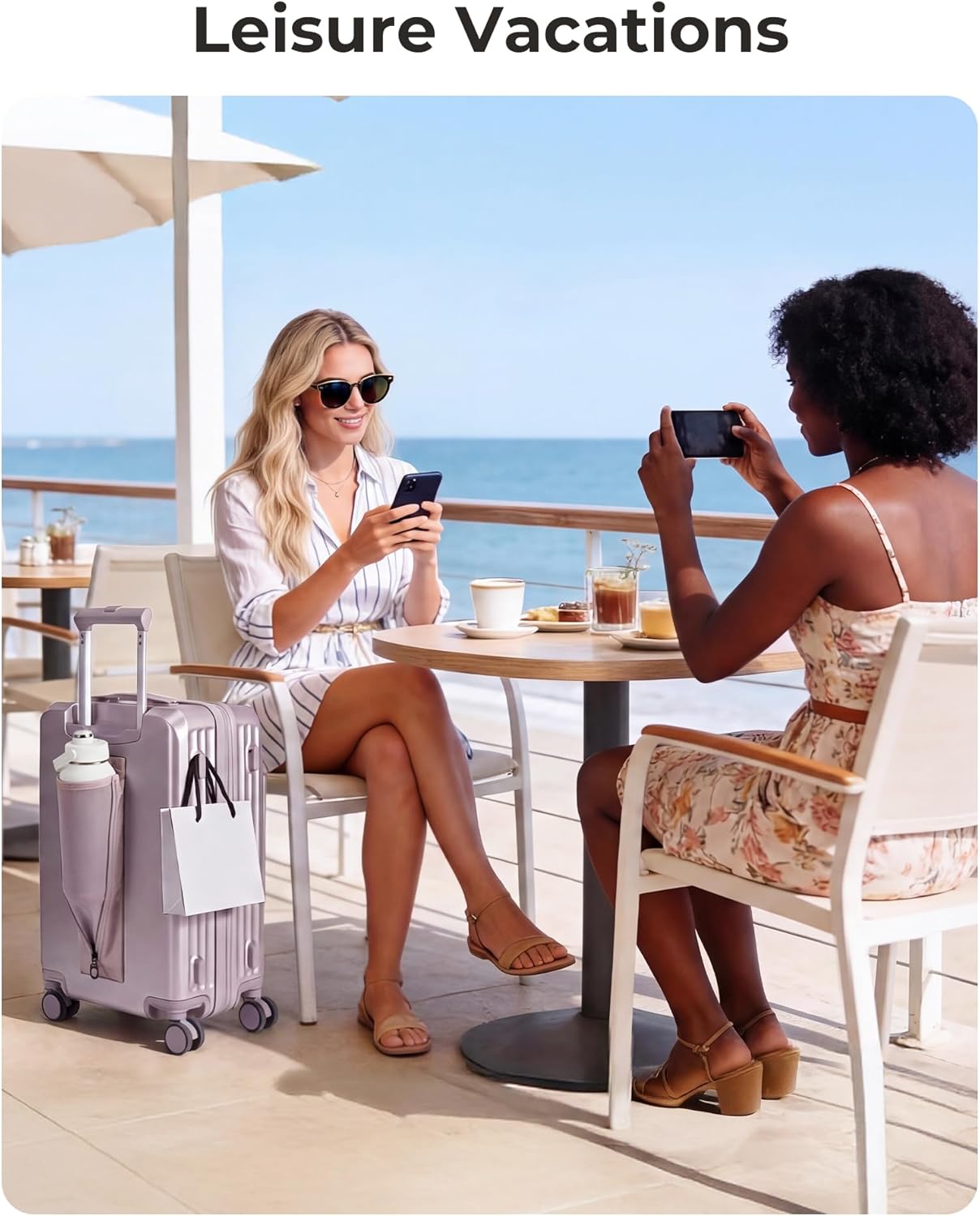 - Ultra-Deep Main Cavity (20-Inch Equivalent): Engineered with significantly more vertical depth than standard 20” carry-ons, this suitcase offers expanded storage capacity without increasing its overall footprint. It holds the equivalent of a deeper, expandable 20-inch suitcase, allowing you to pack more clothes, shoes, and accessories while still fitting comfortably in overhead bins.