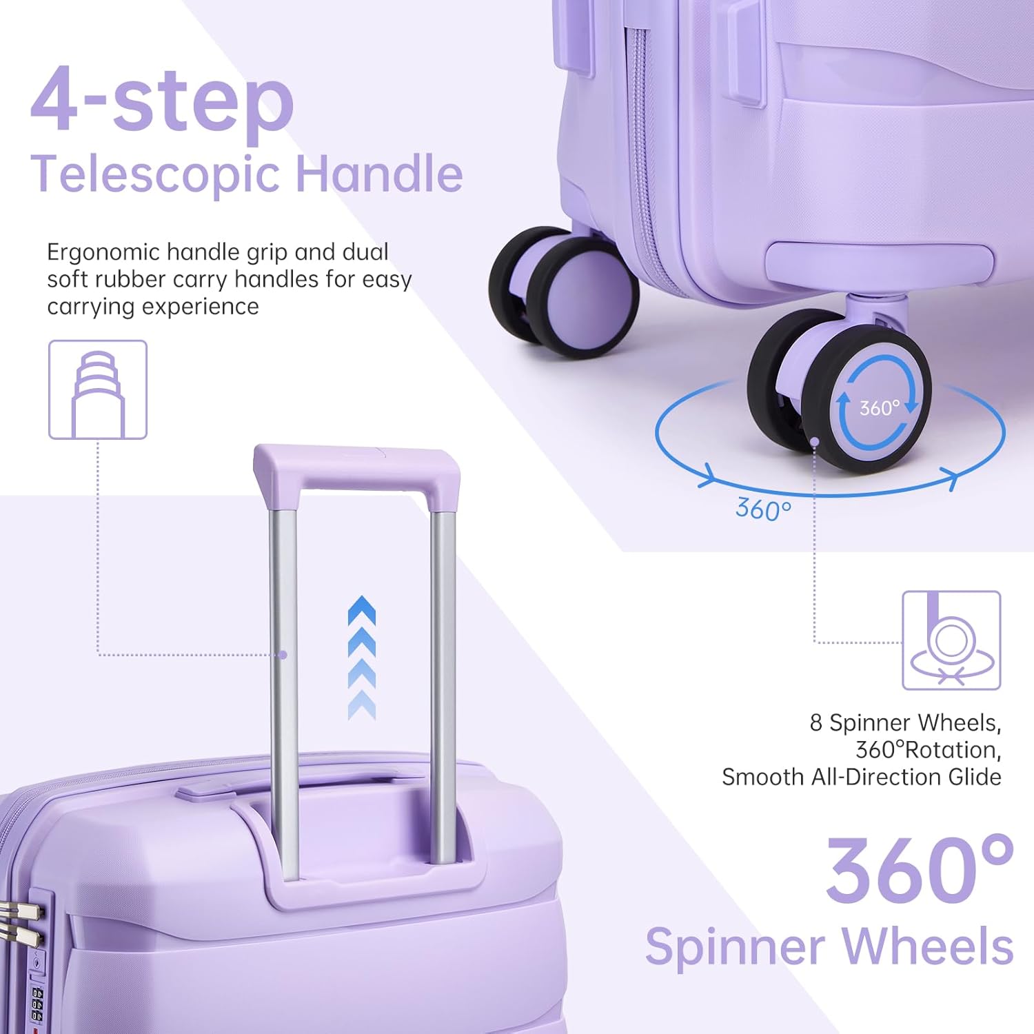 Carry On Luggage 22x14x9 Airline Approved, 22 Inch PP Hardshell Luggage Carry-on Suitcase with Spinner Wheels, Carry On Suitcase Set for Women (Lavender)