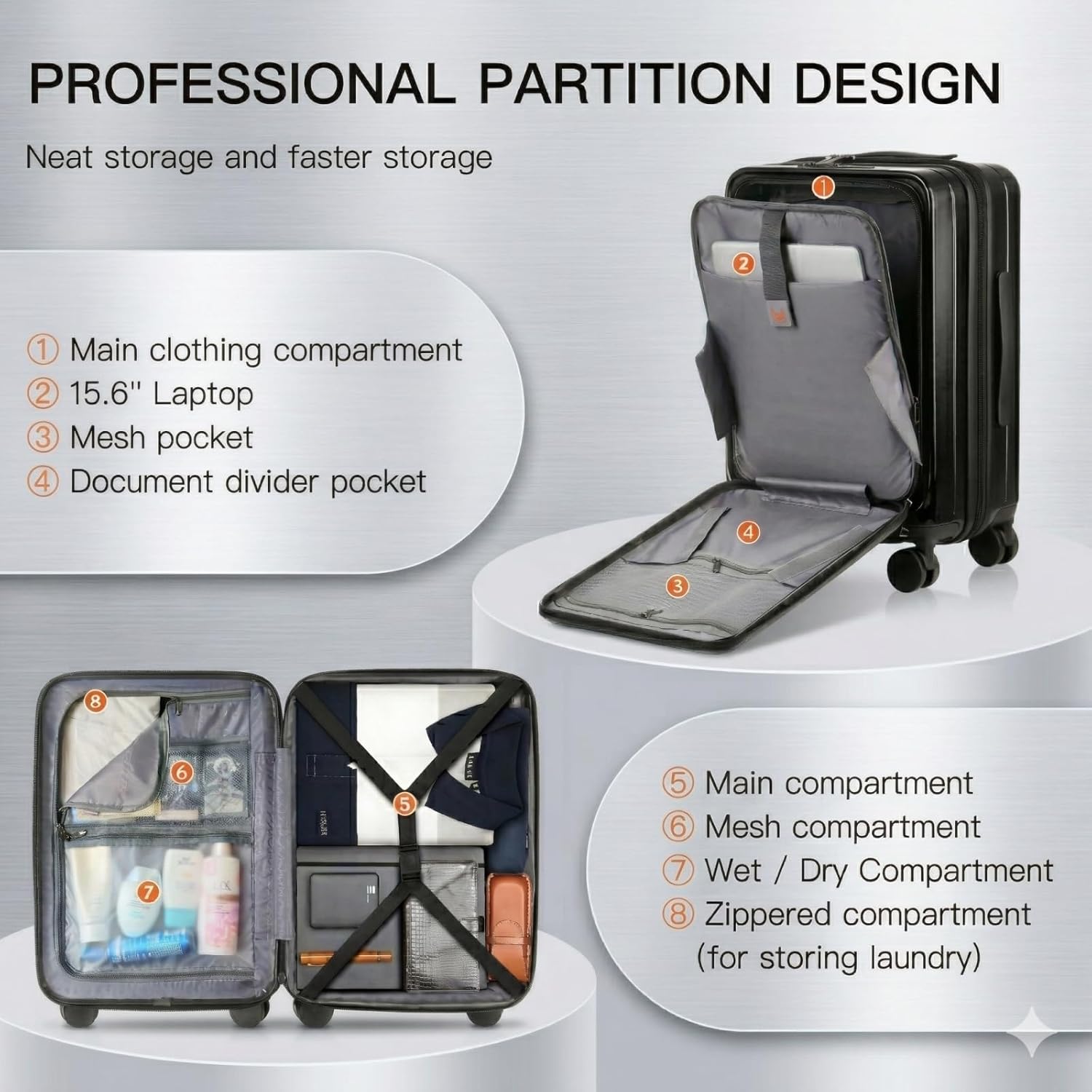 This airline-approved 20-inch carry-on luggage offers a perfect balance of durability, lightweight design, and smart functionality for travelers who value efficiency and style. Crafted from premium polycarbonate material, this hard-sided suitcase meets the size requirements of most major airlines, making it ideal for both domestic and international trips. Whether you’re packing for a weekend getaway, a business trip, or simply need reliable storage on the go, this carry-on delivers exceptional performance without compromising on space or comfort.