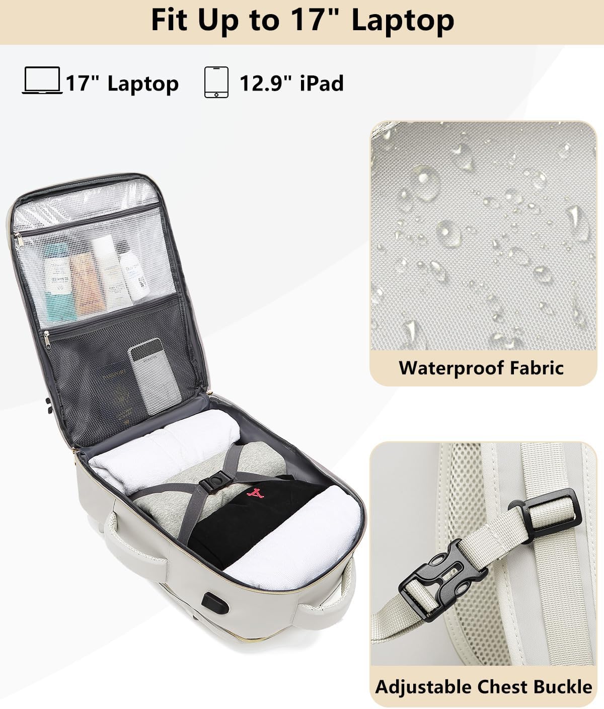Massive Capability & A number of Pockets: The journey backpack has a 40L giant capability and 4 foremost compartments, which might meet each day and journey wants. The journey backpack for ladies’s foremost compartment can retailer a variety of issues, together with 5-8 items of clothes, sneakers, books, and plenty of different objects. The separate laptop computer compartment is padded with EVA foam to supply one of the best safety on your 17″ laptop computer and 12.9″ iPad. The entrance compartment has many pockets to maintain your belongings organized