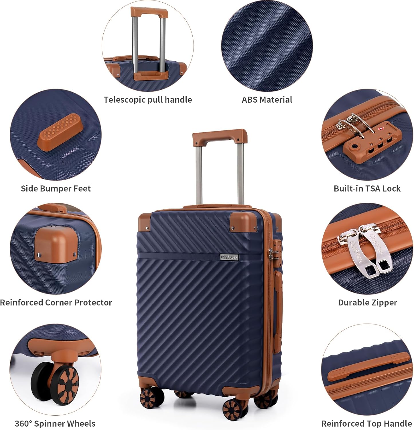 - 8 Silent Rolling Spinner Wheels: Equipped with eight high-quality universal spinner wheels, this set delivers smooth, quiet mobility across various surfaces. The shock-absorbing design allows for 360° rotation, enabling effortless navigation through crowded terminals or uneven sidewalks.