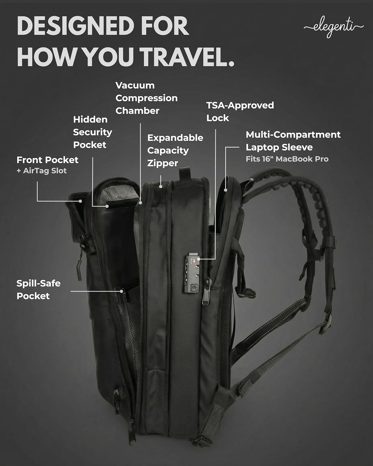 This travel backpack is especially beneficial for business travelers, digital nomads, and vacationers who prioritize space efficiency without sacrificing comfort or organization. The vacuum compression system is particularly useful for folding bulky sweaters, jackets, and winter wear, enabling you to carry more outfits in a single bag. As a carry-on compliant backpack, it helps avoid checked baggage fees and reduces wait times at baggage claim. The padded laptop sleeve adds value for professionals needing to work remotely, while the water-resistant shell provides peace of mind in wet climates. Its expandable design makes it adaptable—ideal for weekend trips, international travel, or multi-day excursions where packing minimalism matters.