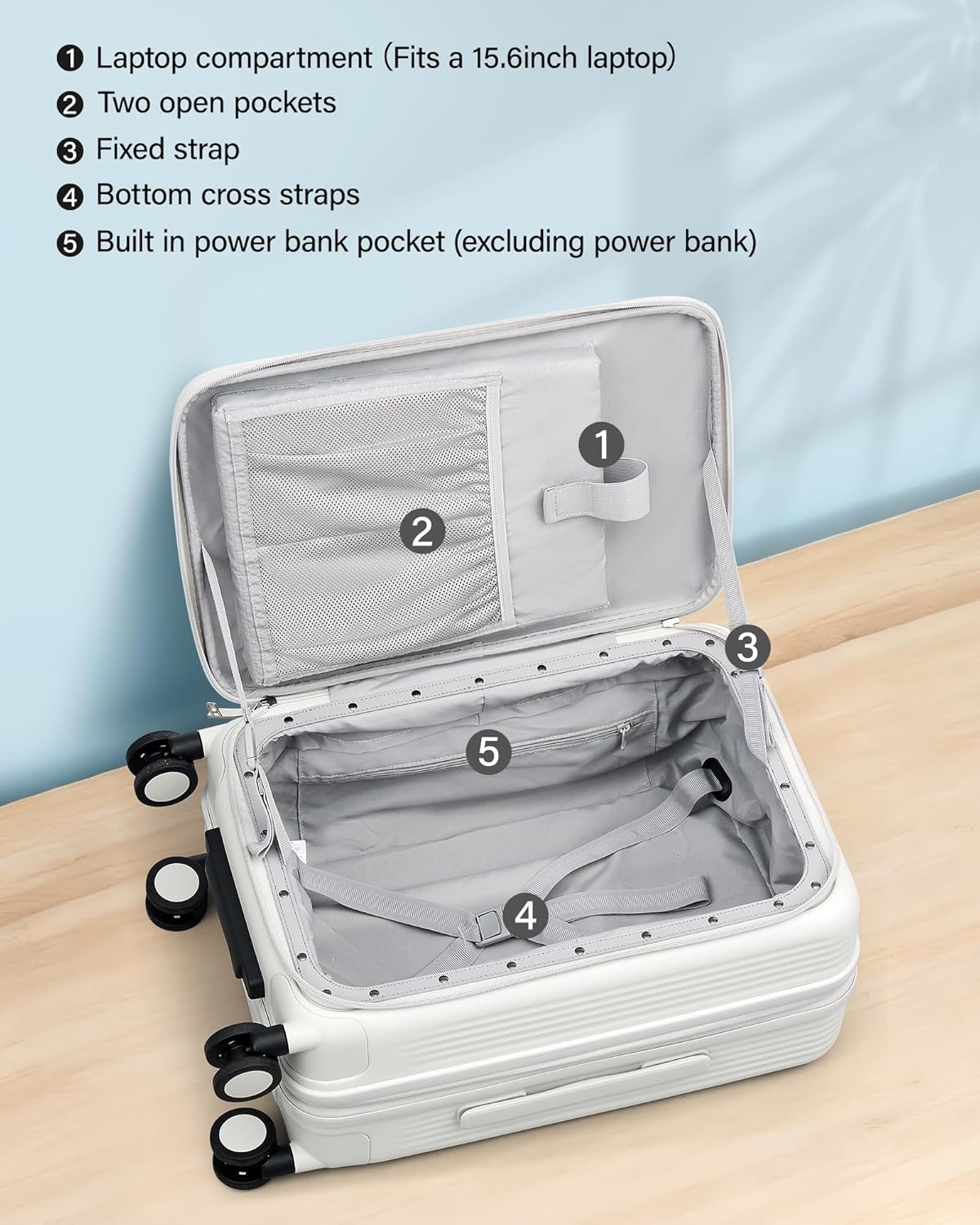 【High-Opening & Organized Inside 】The progressive top-opening carryon baggage design permits for straightforward one-handed entry and deeper loading area, excellent for tight areas.This journey suitcase has two mesh pockets inside, a 15.6-inch laptop computer compartment and a devoted energy financial institution pocket(energy financial institution not included). The cross straps design on the backside can successfully safe a small quantity of clothes