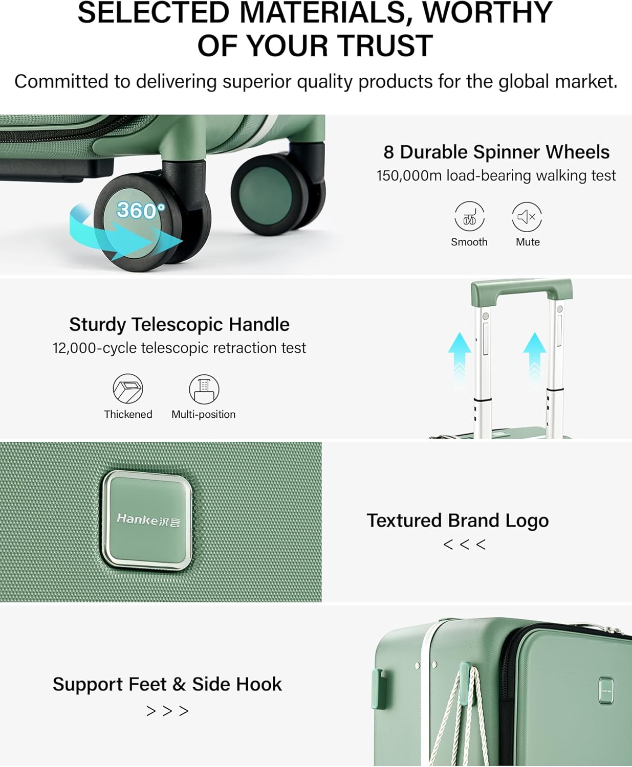 - 8 Spinner Wheels: Equipped with eight multidirectional spinner wheels for smooth rolling in all directions, reducing strain on your arms and shoulders while moving through airports or city streets.