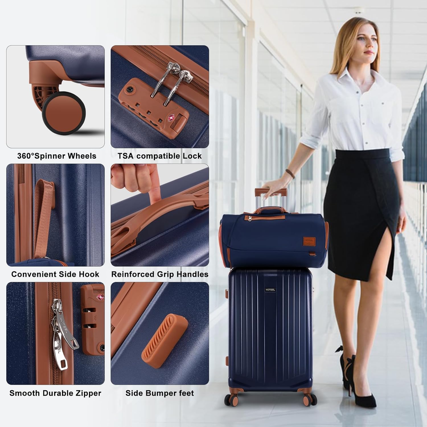 This Hoteel luggage set offers a complete travel solution with a 3-piece collection designed for modern travelers. The set includes a 20″ carry-on suitcase, a 25L multi-purpose duffel bag, and a toiletry bag, making it ideal for short trips, weekend getaways, gym sessions, or as a reliable travel supplement. Crafted from durable ABS+PC hard shell material, the carry-on case is both lightweight and impact-resistant, ensuring your belongings stay protected during transit. With smooth spinner wheels and a built-in TSA-approved lock, this set combines convenience, security, and style. Backed by a 4-year warranty, it’s a dependable choice for frequent flyers and occasional adventurers alike.