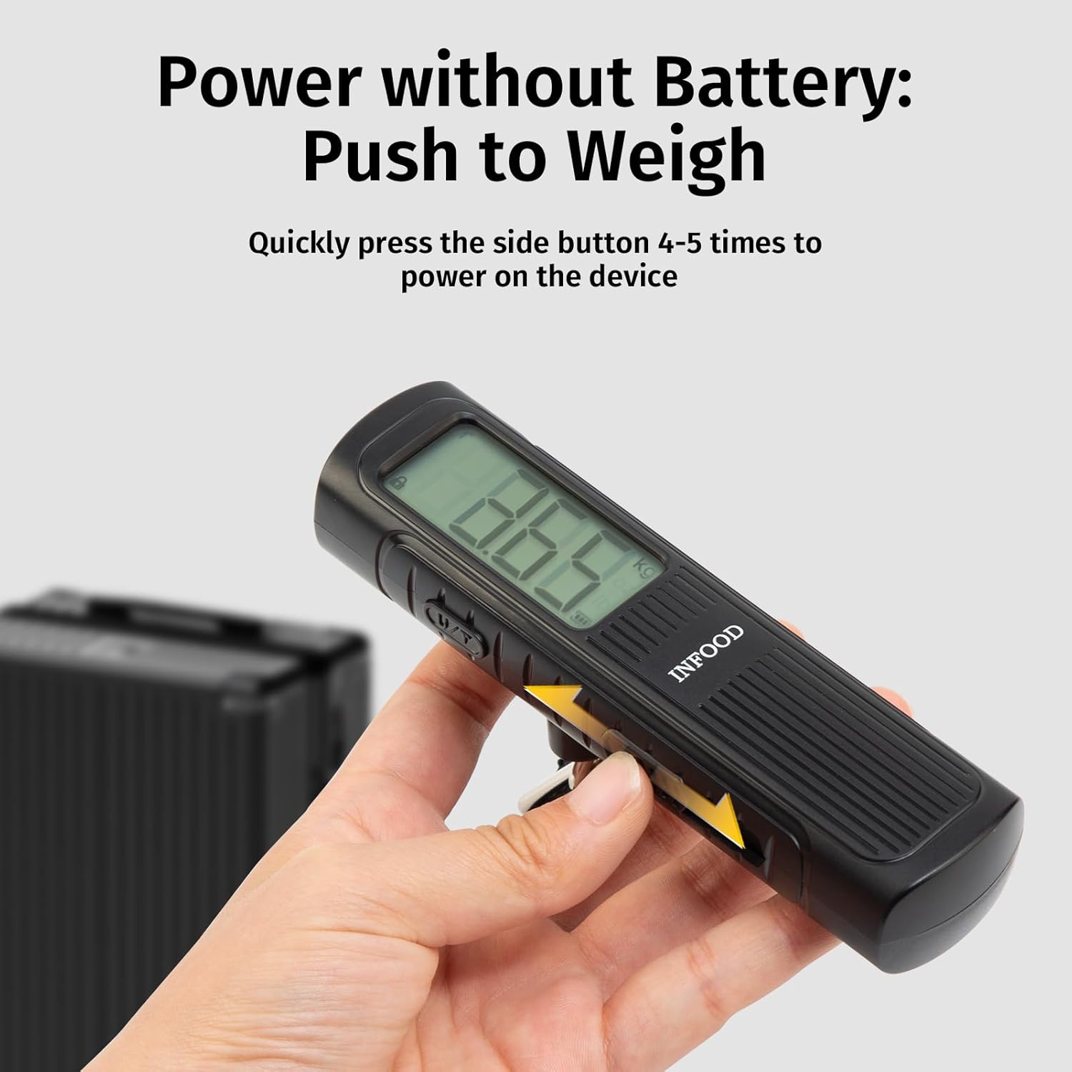 - Battery-Free Operation: The scale powers on instantly with just 4–5 side button presses, eliminating the need for disposable batteries or charging. This energy-efficient design ensures the scale is always functional and eco-friendly, making it perfect for long-term travel use.