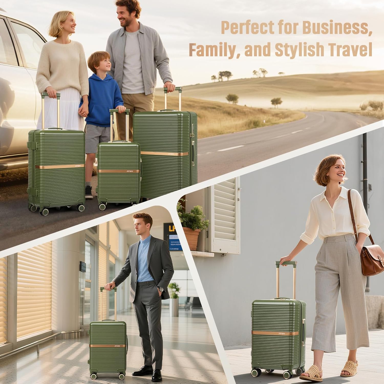 The Joyway 3 Piece Luggage Set delivers a smart, practical solution for travelers who want one set that adapts to any journey. Designed with three essential sizes—20-inch carry-on, 24-inch mid-size, and 28-inch large checked suitcase—this collection covers everything from weekend escapes to international family holidays. Each piece is built with lightweight yet strong ABS hardshell material, offering protection without adding unnecessary weight. Whether you’re navigating airport terminals or rolling through hotel lobbies, the smooth spinner wheels provide effortless maneuverability. Every suitcase includes a TSA-approved combination lock for secure travel, and a standout feature is the built-in cup holder—a thoughtful addition that keeps beverages safe during layovers, train rides, or busy transit zones.