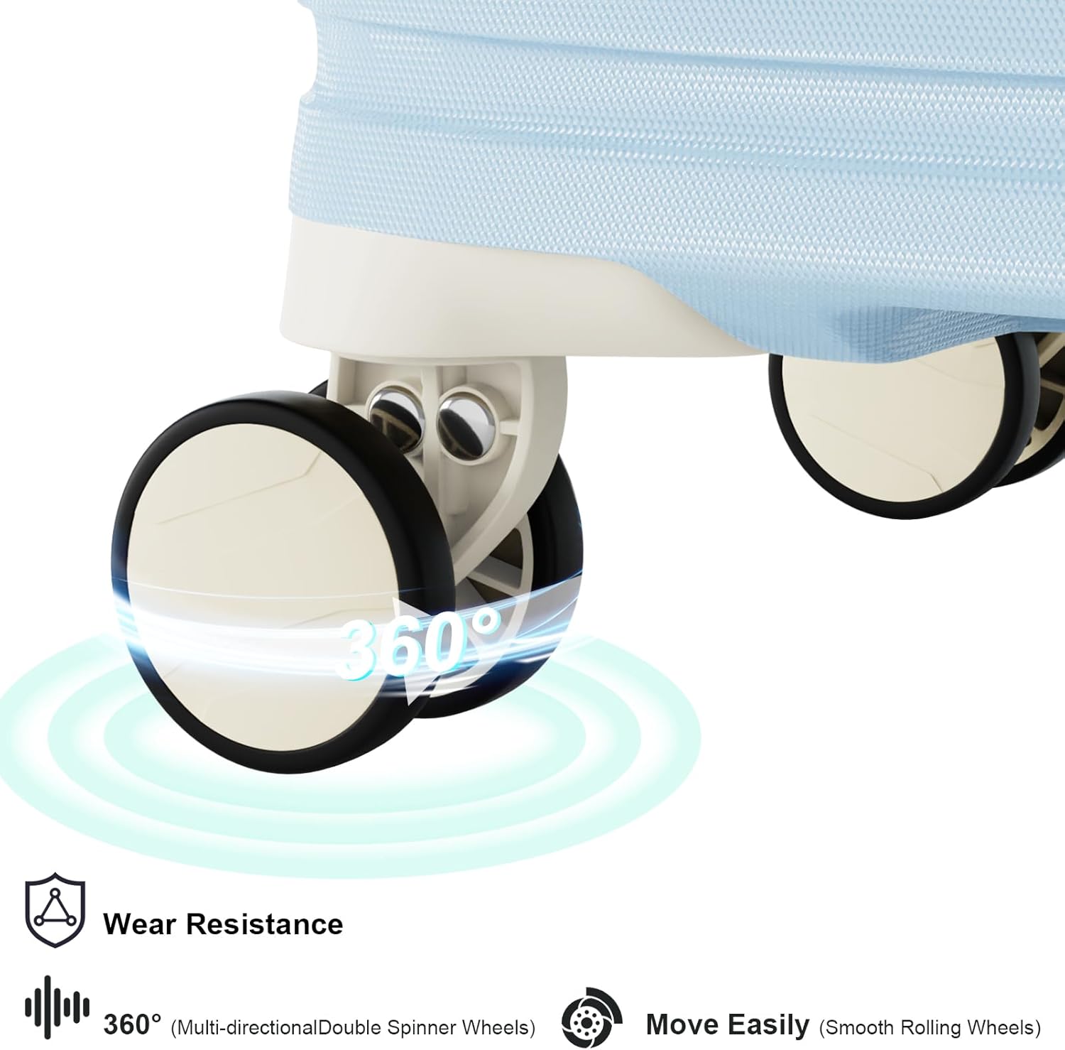 • Spinner Wheel System: Smooth-rolling dual spinner wheels allow 360-degree maneuverability, making it easy to navigate crowded airports, hotel lobbies, or narrow sidewalks.