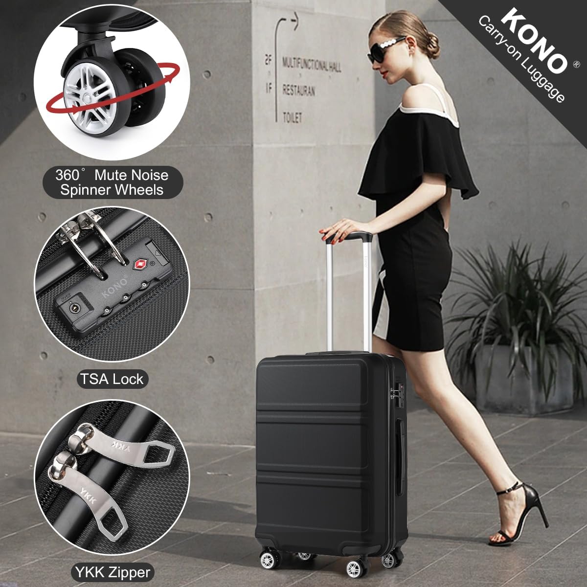 The Kono 24 Inch Spinner Luggage is a medium-sized, hard-sided checked suitcase designed for travelers who need reliable performance and ample space. Built with a lightweight PC+ABS construction, it offers durability without adding excessive weight, making it ideal for 5-7 day trips or longer journeys. The suitcase features smooth-gliding spinner wheels and a secure TSA-approved lock, ensuring easy maneuverability and peace of mind during air travel. Its compact dimensions balance capacity and portability, fitting efficiently in overhead bins or cargo holds. Backed by a 5-year limited warranty, this luggage delivers dependable quality for frequent flyers and vacationers alike.