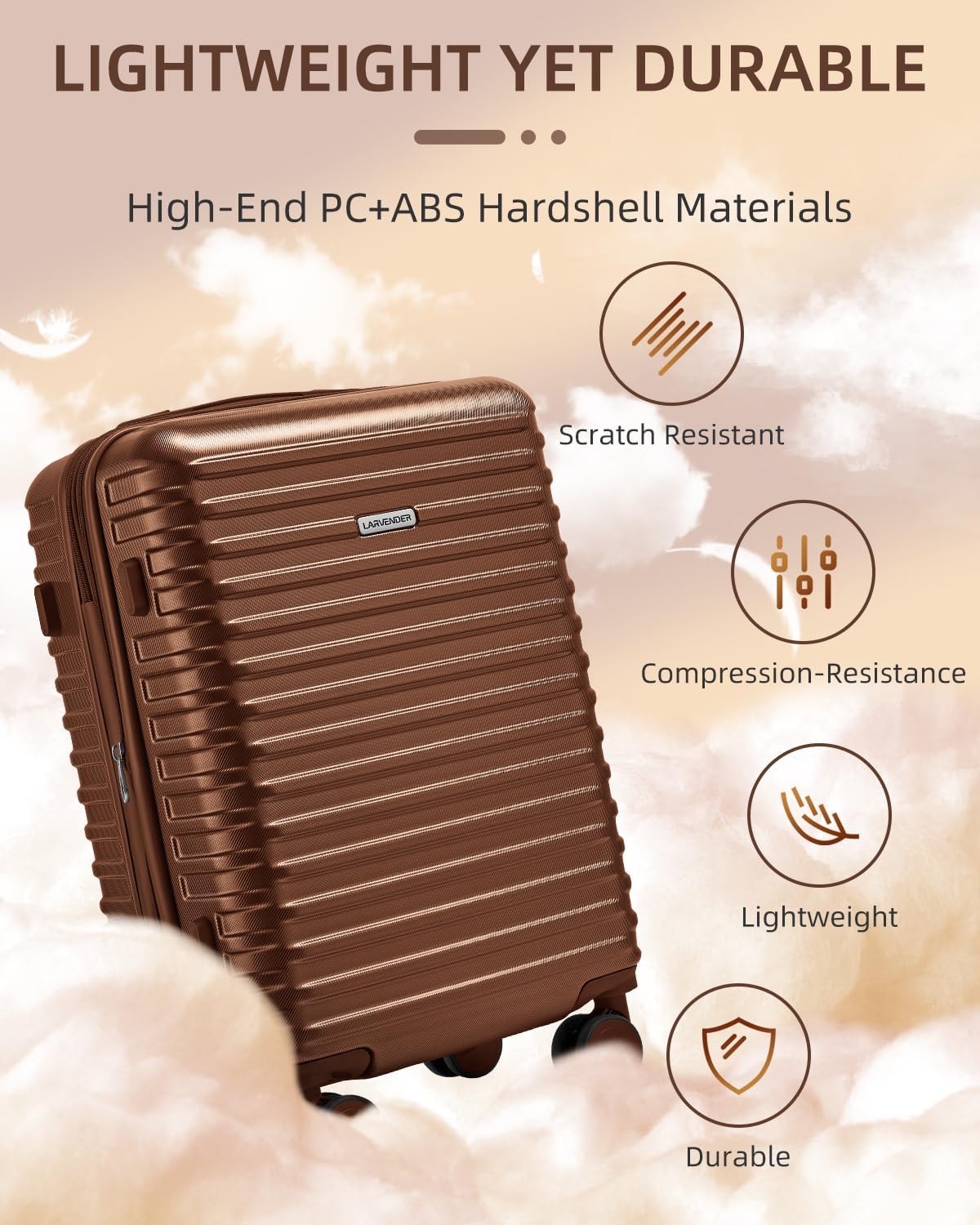 The LARVENDER Carry on Luggage set delivers a smart, space-efficient travel solution tailored for modern adventurers who value convenience and reliability. This thoughtfully designed 3-piece collection combines a 20-inch hardside carry-on suitcase, a compact weekender duffel bag, and a functional toiletry bag—each engineered to streamline your journey from start to finish. Crafted with premium PC+ABS materials, the set ensures durability without excess weight, making it ideal for both domestic and international travel. The expandable main suitcase offers added flexibility when you need extra room, while maintaining strict compliance with most major airline overhead bin requirements. Finished in a sleek Maple hue, this set blends practicality with understated elegance, perfect for women and men alike.