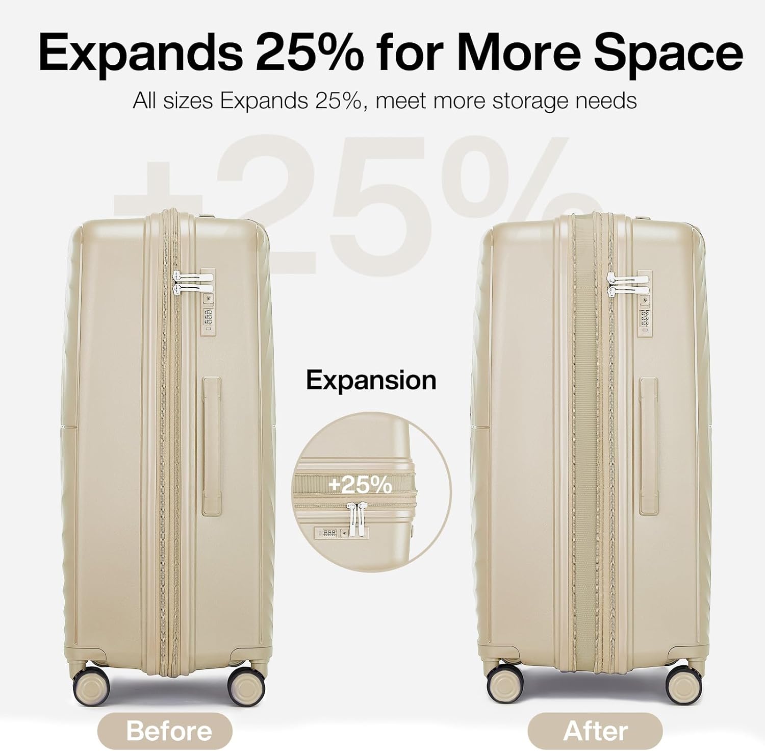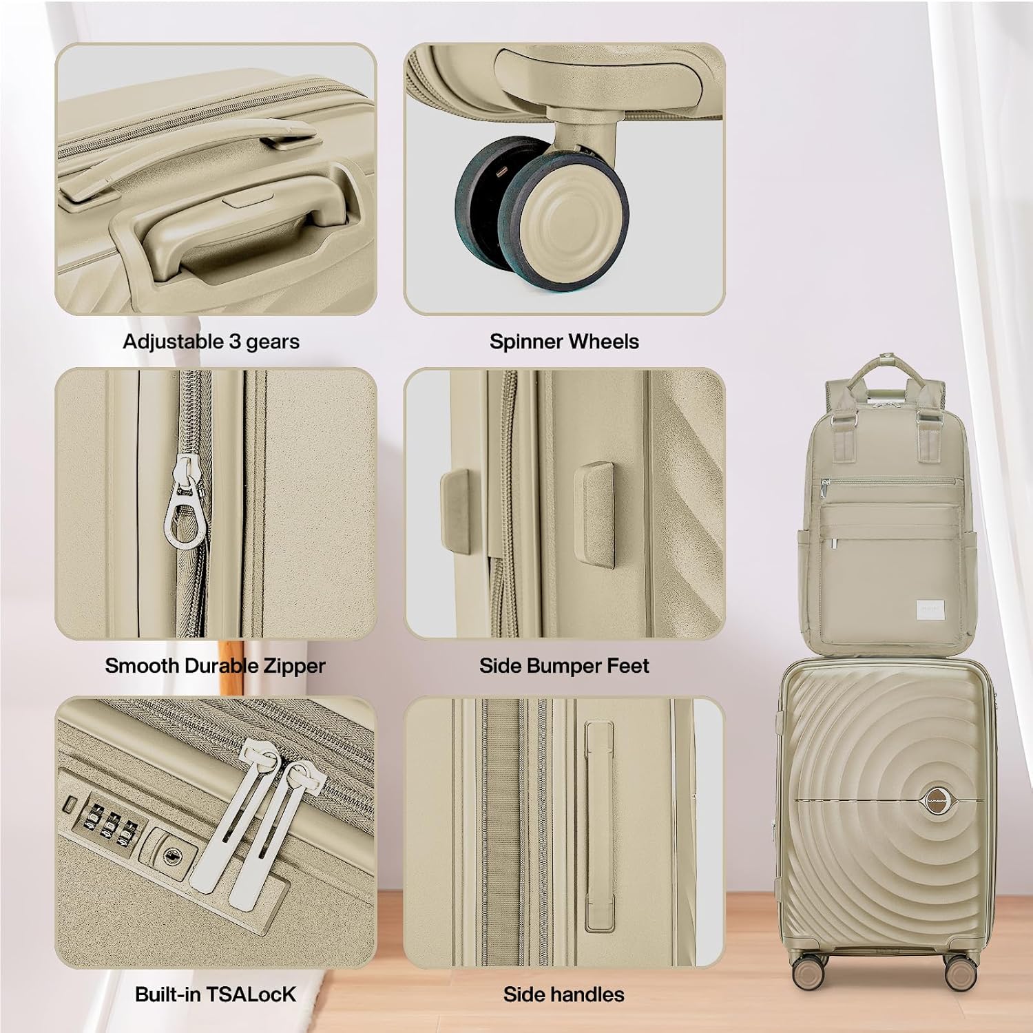 LARVENDER Carry On Luggage 22x14x9 Airline Approved, Expandable PP 20 inch Carry On Suitcases with Wheels, Lightweight Luggage Sets 3 Pieces for Women(CHAMPAGNE/20/BP/TB)