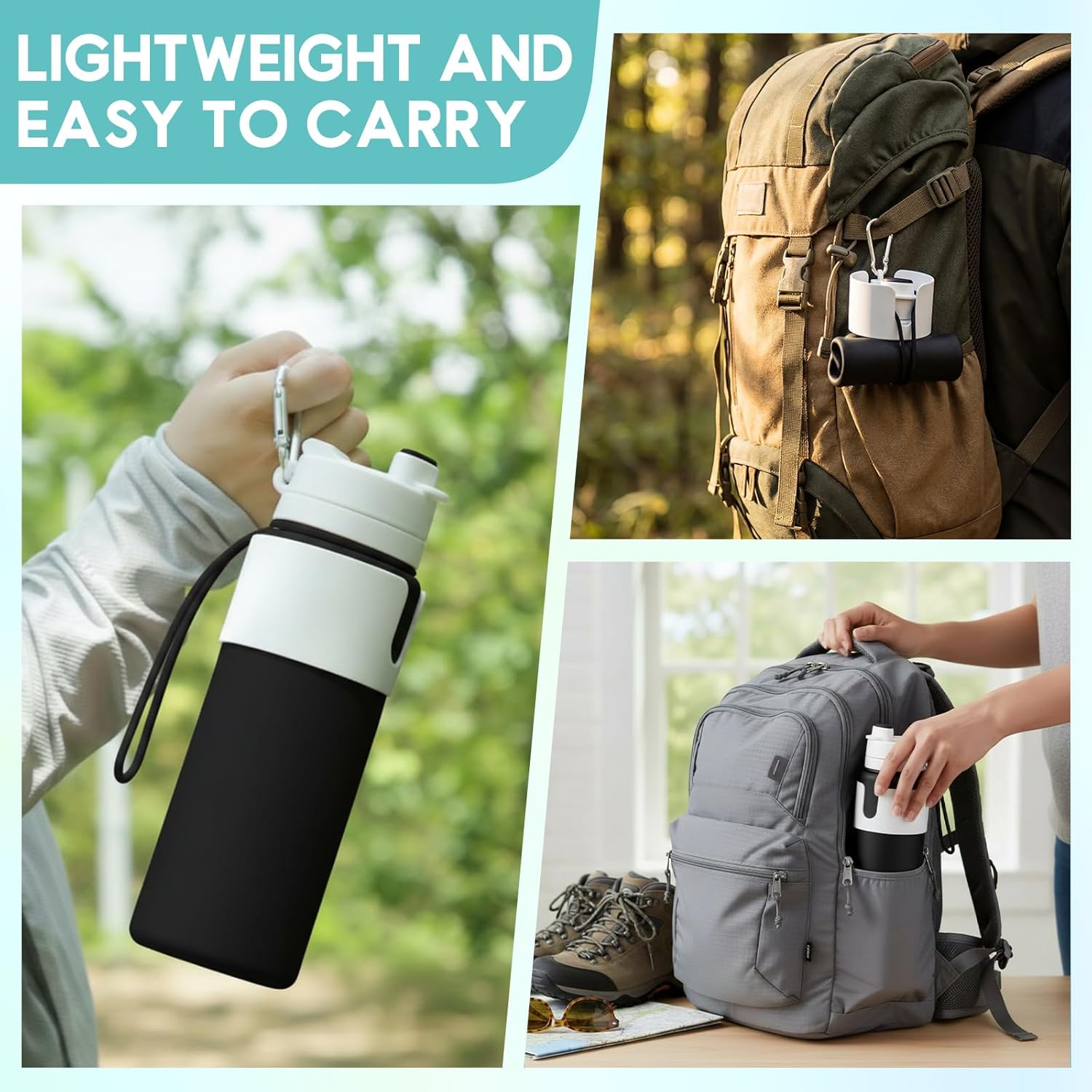 - Carabiner: Integrated into each bottle for immediate utility
