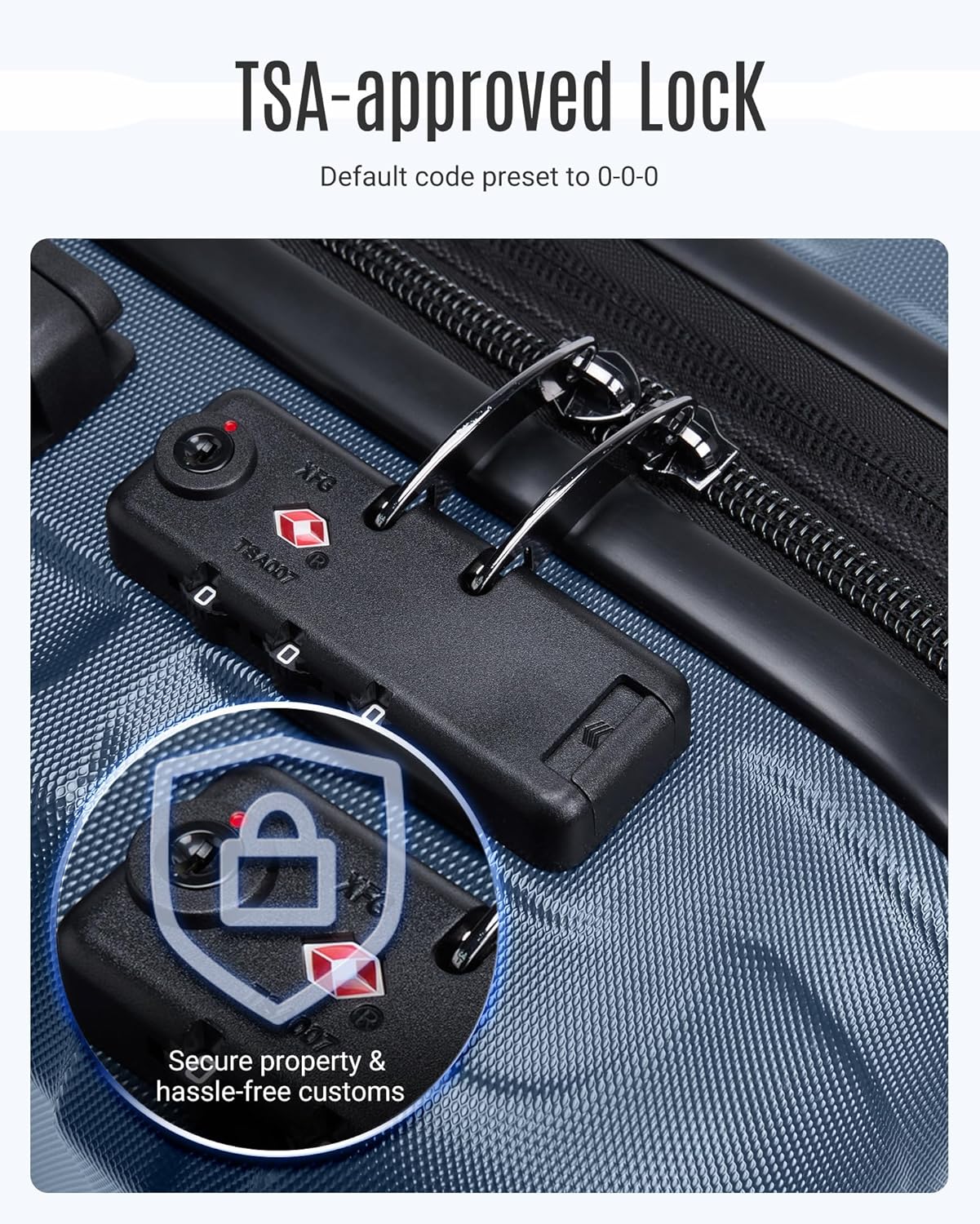 Enhanced Safety: Journey with peace of thoughts with hardshell baggage units that includes a TSA-approved mixture lock, which has a default code preset to 0-0-0. Excessive-quality zippers are designed to withstand punctures and guarantee safe closure, safeguarding belongings all through journey. With these safety features within the 3-piece baggage units, focus can stay on having fun with the journey, understanding valuables are well-protected
