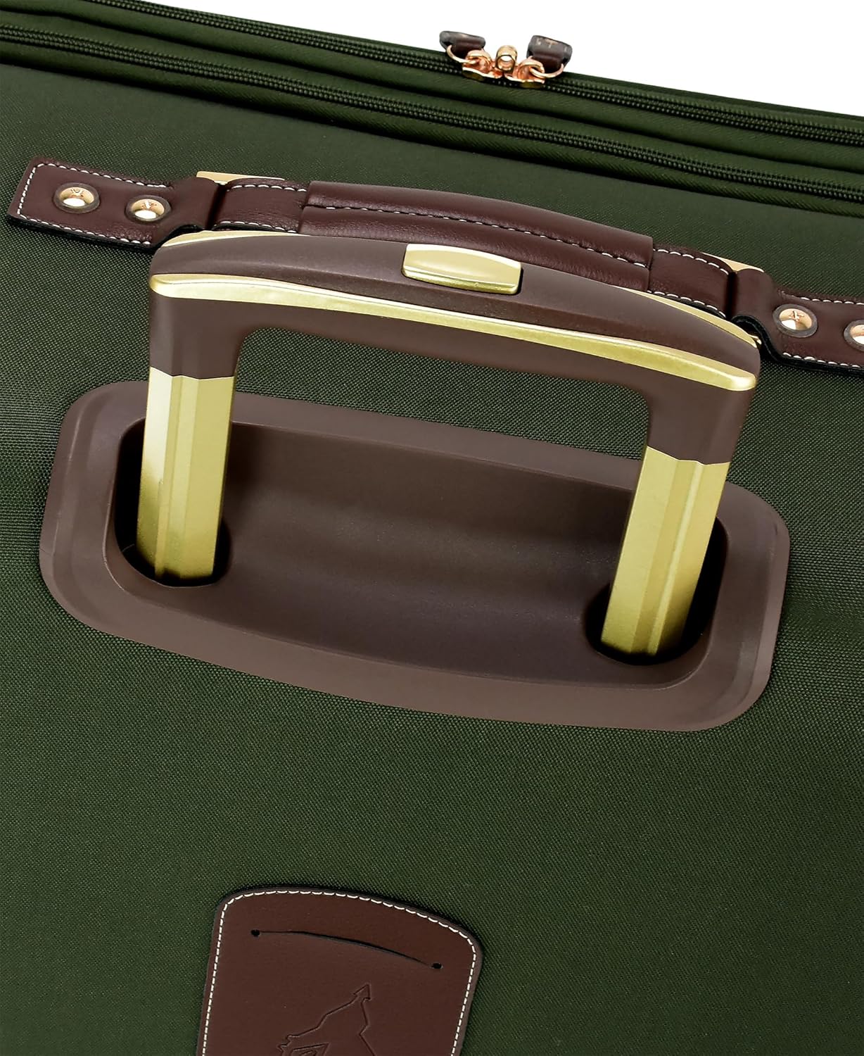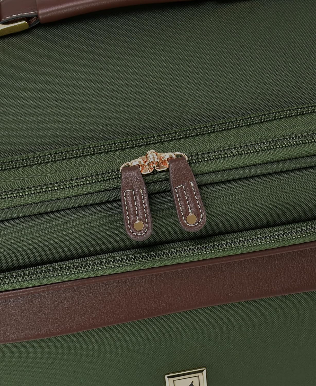 The London Fog Nottingham 20 Inch Expandable Spinner Carry on Softside Suitcase in Olive Chestnut is designed for travelers who value durability, smart organization, and effortless mobility. This compact carry-on features an expandable design that adds extra packing space when needed, making it ideal for short trips or light travelers seeking flexibility. Built with a Hyperlight chassis base and reinforced honeycomb structure, it offers lightweight construction without sacrificing strength. The softside material ensures easy maneuverability through airports while maintaining a sleek, modern silhouette. With its signature London Fog plaid interior lining and thoughtful pocket system, this suitcase combines practicality with classic style.