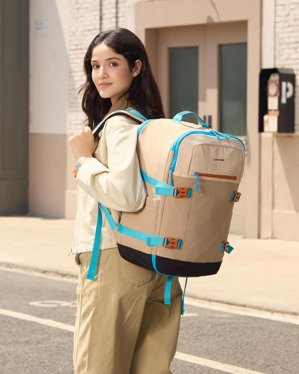 This travel backpack from LOVEVOOK is designed for both women and men who need reliable, airline-approved carry-on luggage that fits under the seat. With a 40-liter capacity and dimensions of 18 × 14 × 8 inches, it meets personal item size restrictions for major airlines such as Spirit, Frontier, and JetBlue. The inclusion of three packing cubes enhances organization, making it ideal for weekend getaways or overnight trips. Constructed with water-resistant materials, this versatile backpack ensures your belongings stay dry in unpredictable weather.