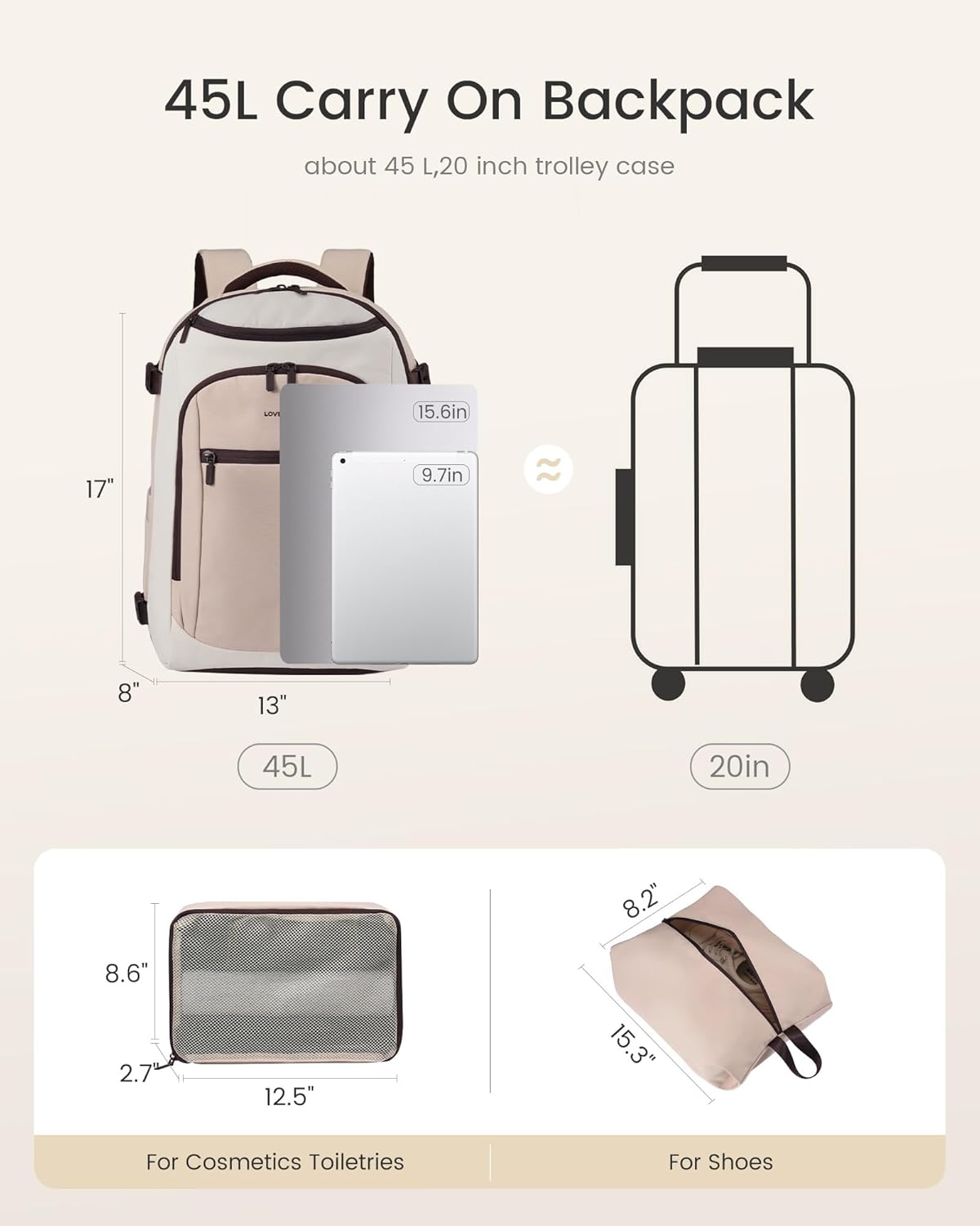 The LOVEVOOK 40L travel backpack is engineered for modern travelers who demand both functionality and style. Designed to serve dual purposes for women and men, this backpack combines a generous 40-liter capacity with smart organization features that make it ideal for daily use, weekend getaways, or short international trips. Whether you’re commuting to the office or exploring a new city, this backpack adapts seamlessly to your lifestyle with its airline-approved dimensions and thoughtful layout.