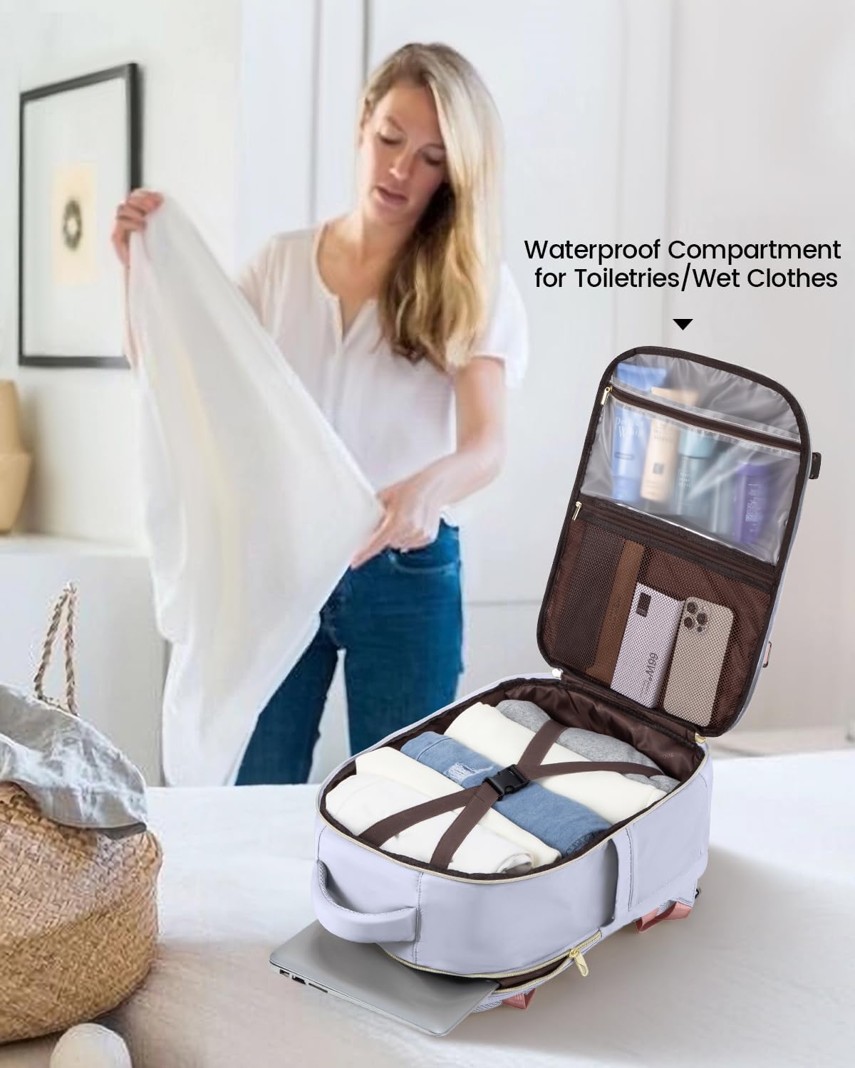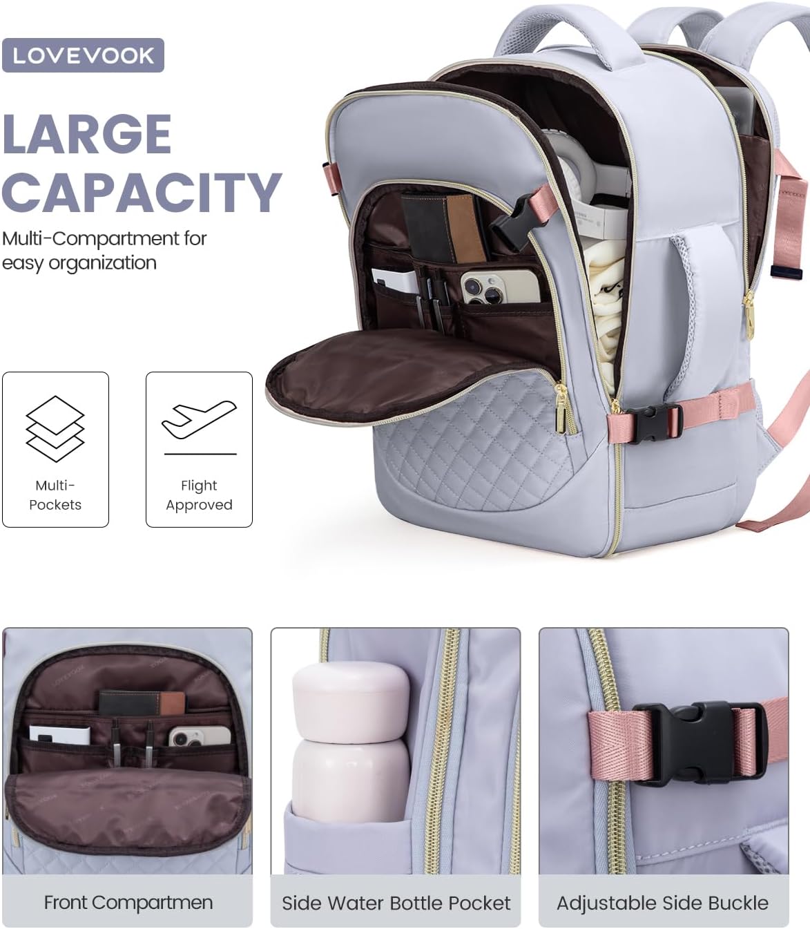 LOVEVOOK Carry on Backpack, 30L Travel Backpack for Women Airline Approved,Luggage Business Weekender Overnight Daypack as Personal Item fit for 15.6 inch Laptop,Silver Gray