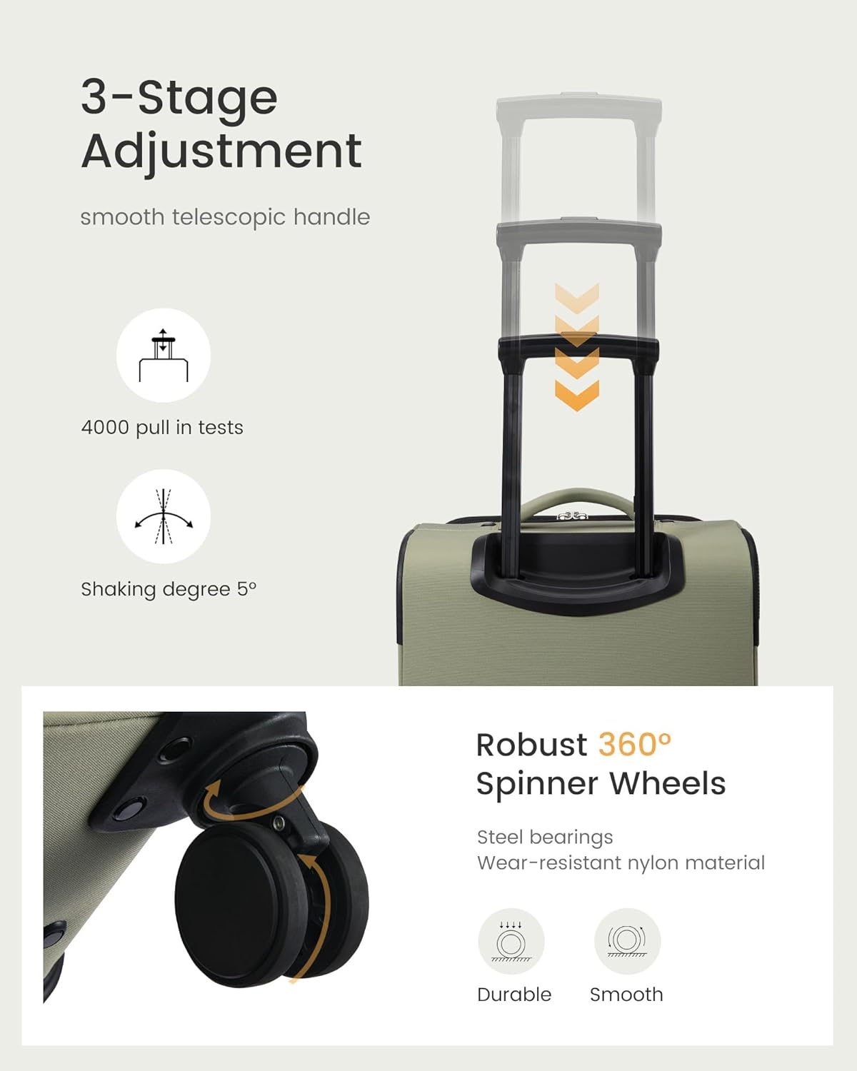 【Easy Mobility】 The rolling baggage is designed with a wise, user-friendly mobility system: smooth-rolling 360° spinner wheels that glide simply even when packed full, a telescoping deal with that locks at 3 adjustable heights for customized consolation, and handy aspect + high carry handles—making each journey straightforward to navigate.