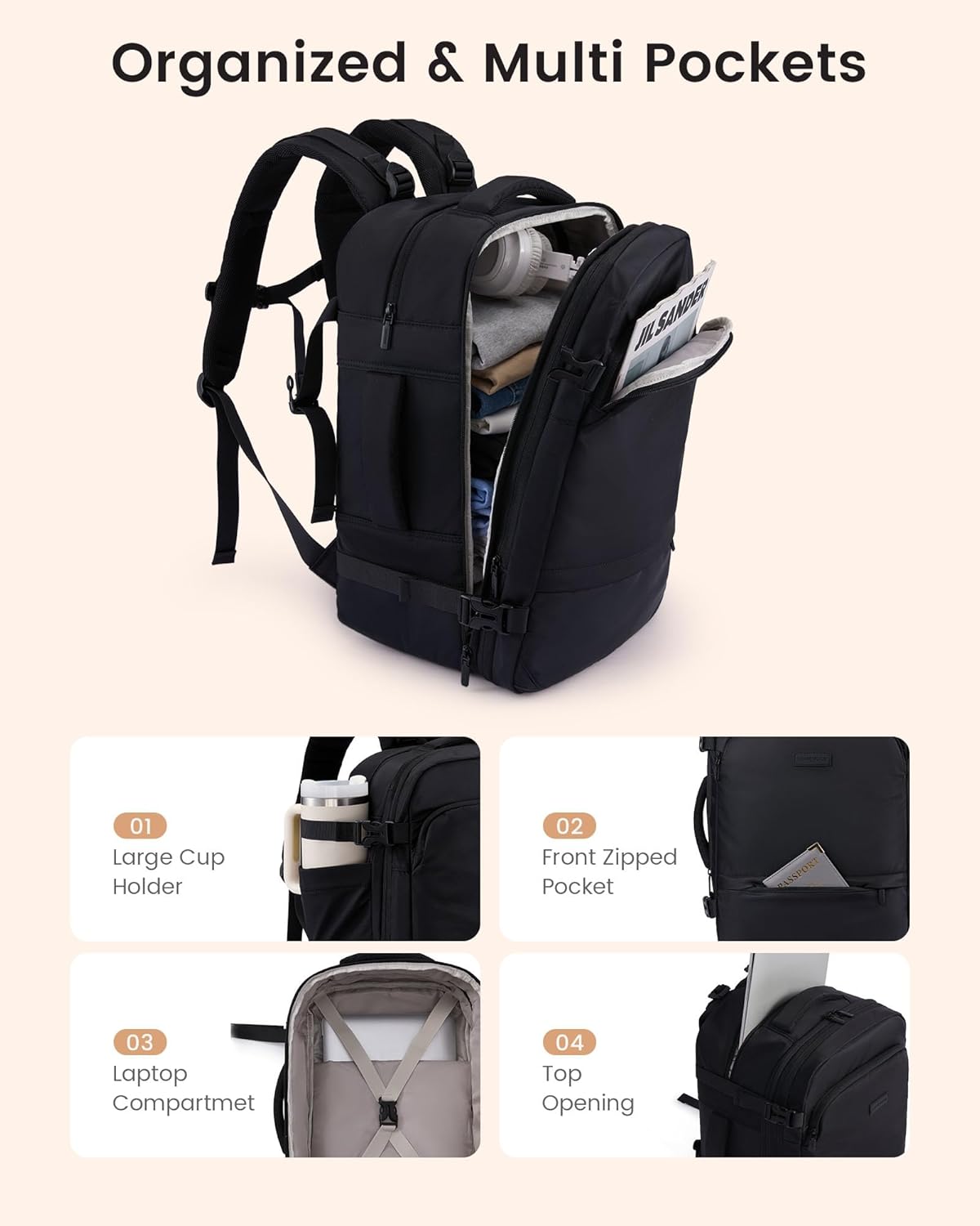 The LOVEVOOK Travel Backpack is thoughtfully crafted for both men and women who want a reliable, airline-approved carry-on that combines smart functionality with everyday practicality. Engineered to meet standard personal item dimensions, this backpack ensures smooth travel by fitting comfortably under airplane seats or in overhead bins—eliminating the need for gate-checking and reducing baggage fees. Its sleek black design offers a professional look suitable for business trips, weekend getaways, or daily commuting.