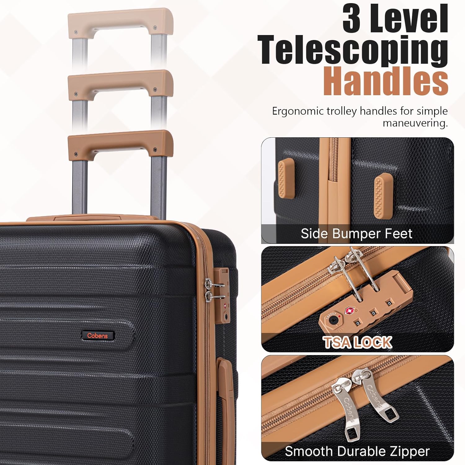 【5 Piece Baggage Units】: Cobens baggage units features a 20-inch carry-on suitcase, a 24-inch medium-sized checked suitcase, a 28-inch giant checked suitcase, a journey tote bag, and a toiletry bag. The suitcases characteristic a removable wheel design, saving area and making them simple to suit into overhead compartments or underneath seats on airplanes. With giant capability and versatile performance, this set meets your numerous journey wants.
