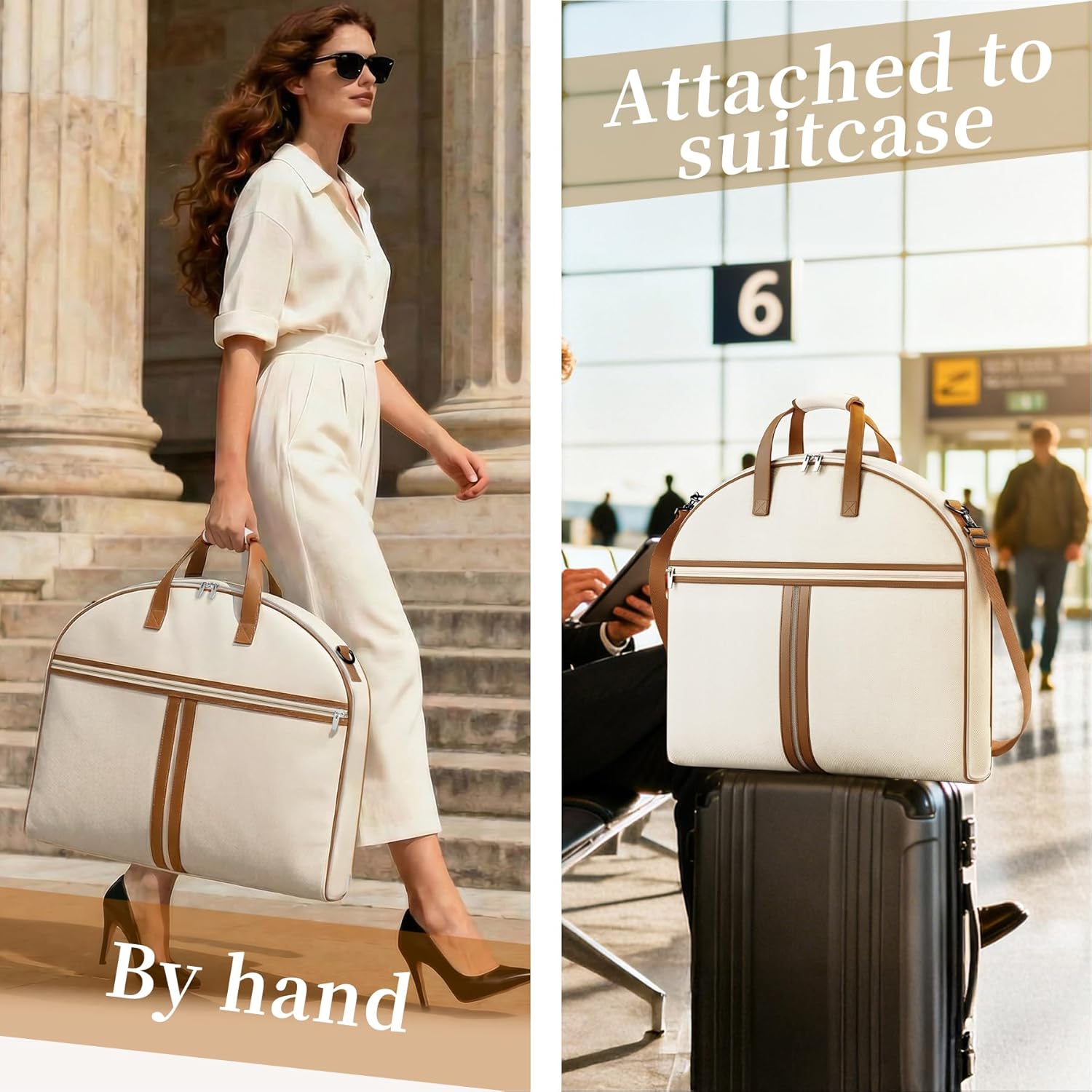 MISSLO Carry on Garment Bags for Travel for Women 56″ Foldable Dress Bag with Large Pockets Bag Suit Luggage Garment Bag with Shoulder Strap for Business, Wedding, Hanging Clothes, Beige