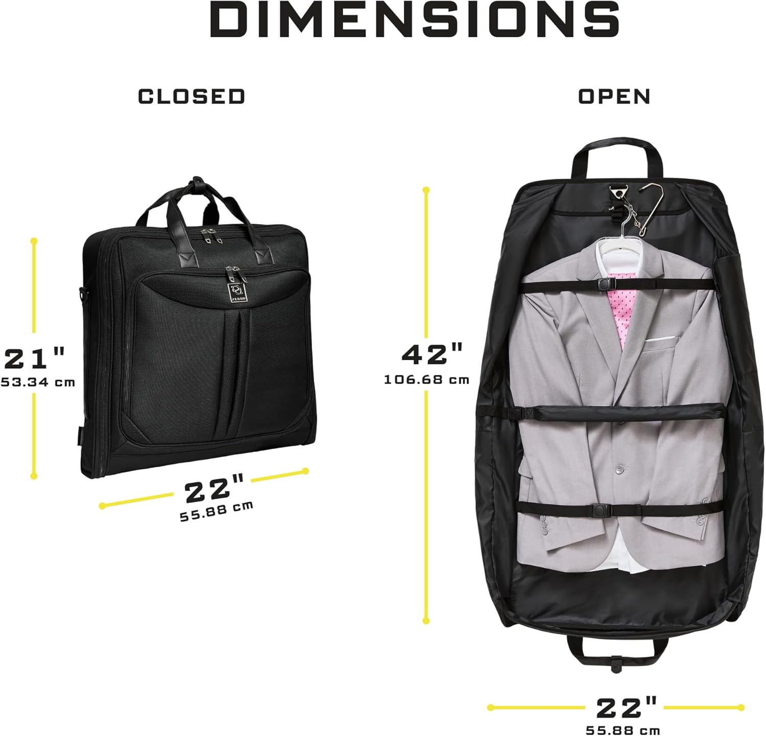 HYBRID SOFT-BODY GARMENT BAG WITH SEMIRIGID STRUCTURE PIPING: Zegur’s over-shoulder clothes service gives stress-free safety for your small business journey, marriage ceremony, or weekend getaway. A number of inside zipper pockets maintain all the things from fits and attire to sneakers and ties. A spacious exterior pocket gives quick access to electronics and paperwork