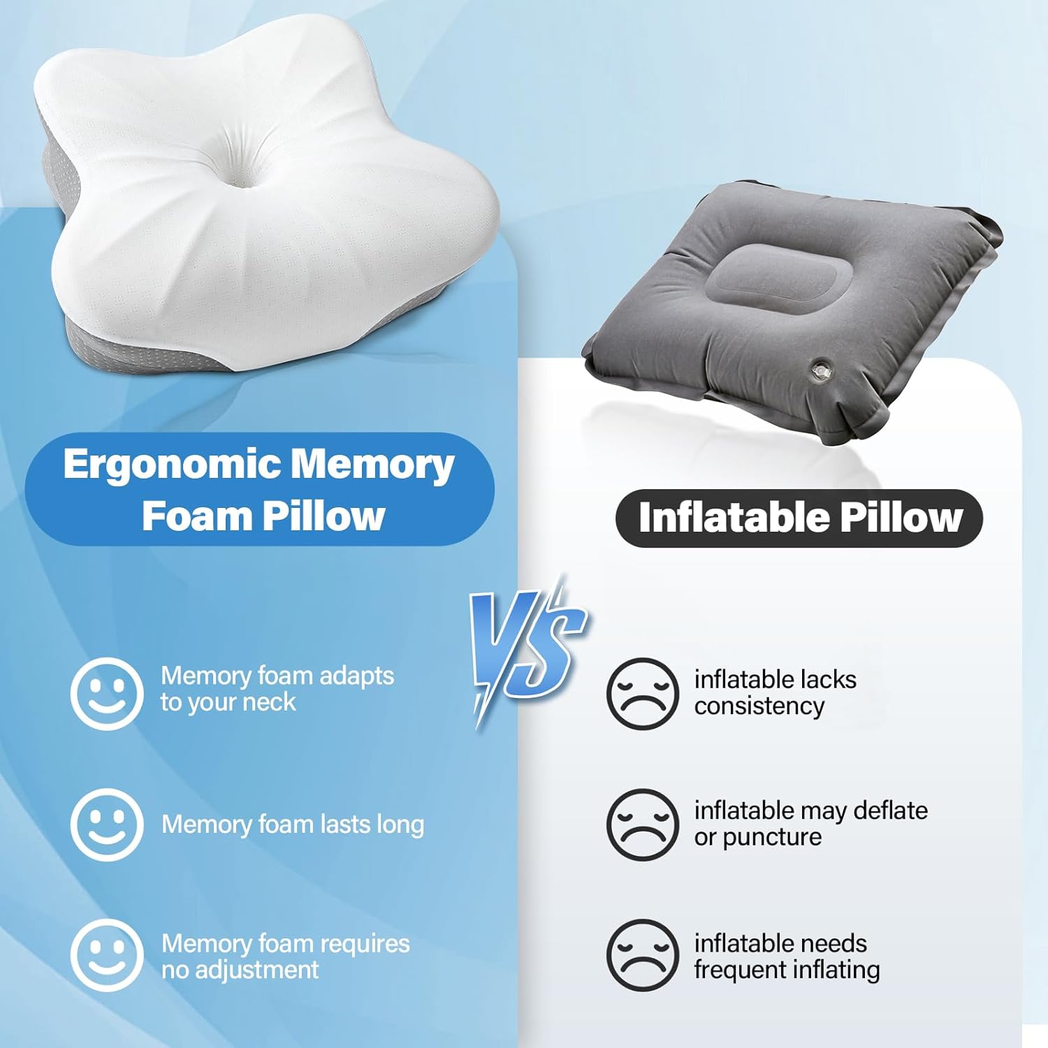 - Contour Design for Spinal Alignment: The ergonomic shape cradles the neck and supports the head, helping maintain natural spinal curvature and reducing stress on the cervical spine.