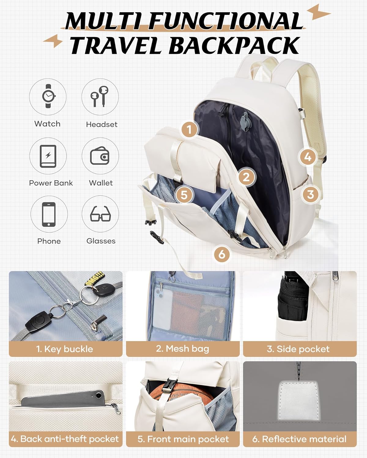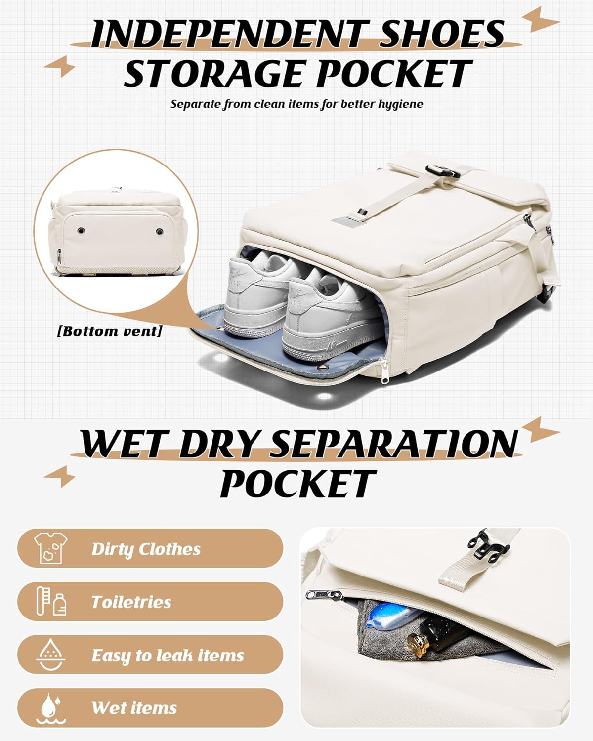 Impartial Shoe Compartment: The underside shoe compartment of this journey backpack options an expandable design that can be utilized as a separate shoe compartment when wanted, permitting you to simply change between slippers or low reduce informal footwear and sneakers. After folding, it can be used as a trendy day by day informal backpack.