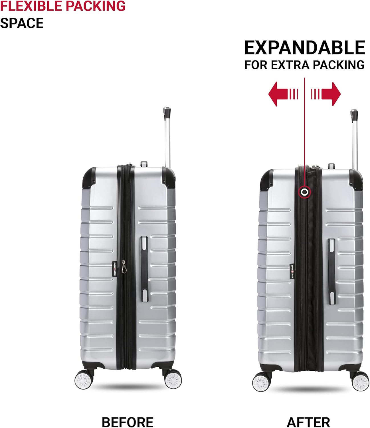SwissGear 7782 Hardside Expandable Luggage with Spinner Wheels, Silver, Checked-Large 27-Inch