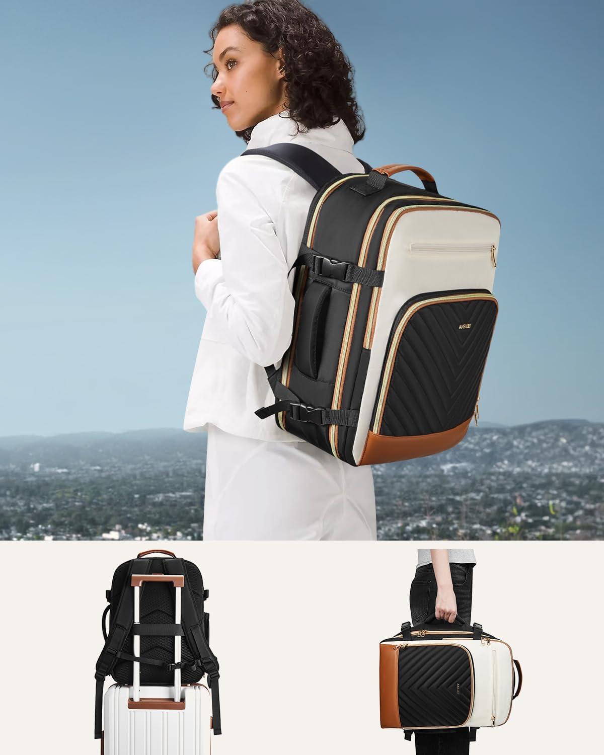 Telena Travel Backpack for Women, 15.6 inch Laptop Backpack TSA Carry on Backpack Personal Item Size Flight Approved Travel Bag Daypack with Multi-Pockets for Work, Travel, Business, Black-Beige-Brown