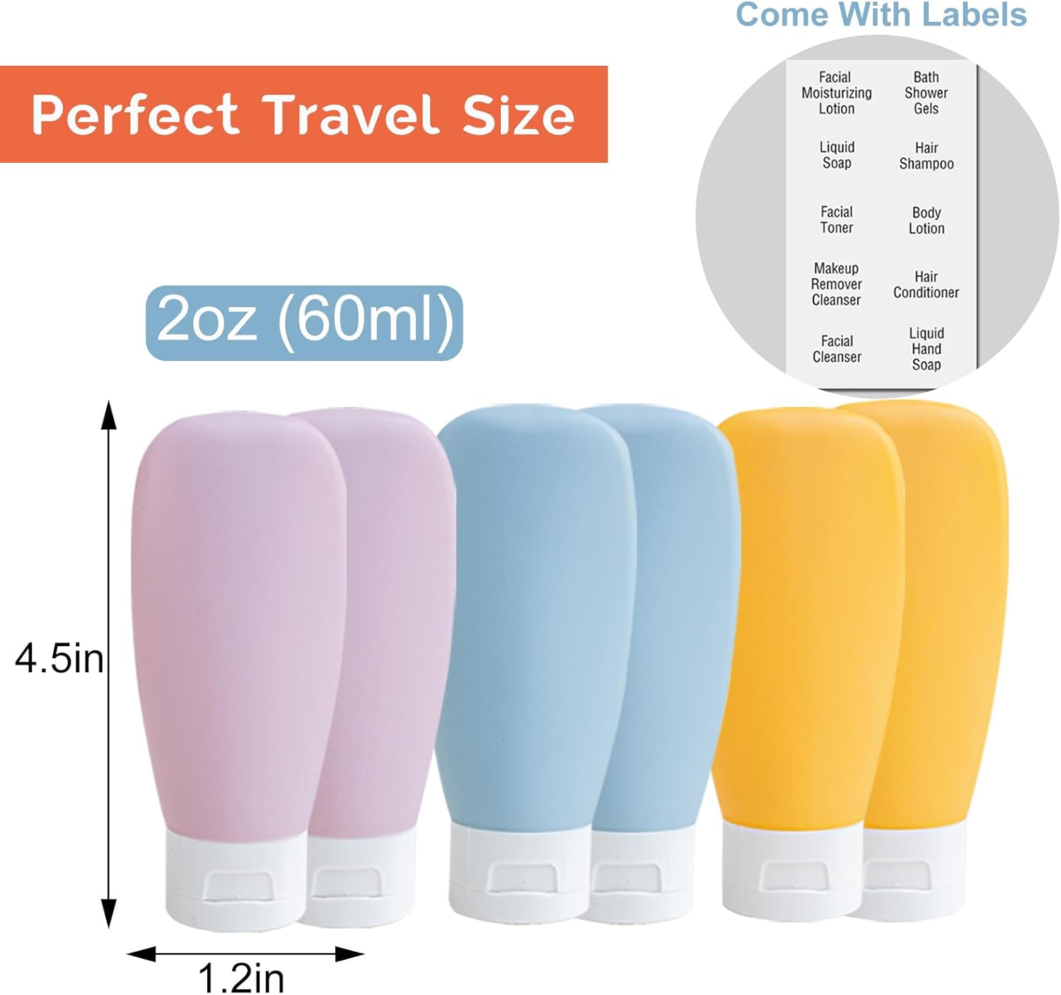 - TSA Approved Size: At exactly 2 fluid ounces (59 ml), every container complies with Transportation Security Administration guidelines. You can bring all six bottles directly onto an airplane without needing to check them or pay additional fees. No more waiting in lines or dealing with confiscated toiletries—just pack and go.