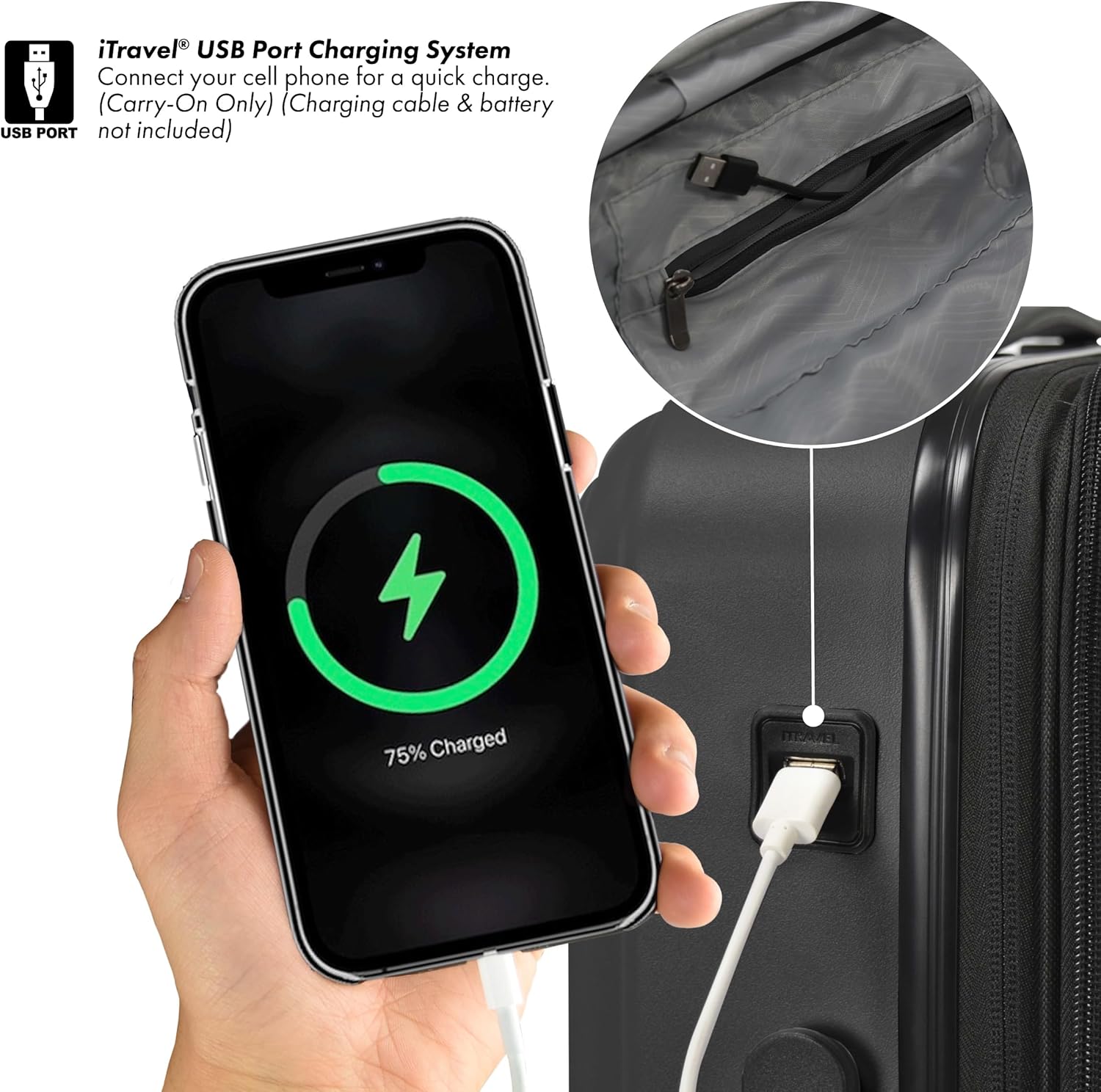 - USB Charging Port: Integrated external USB port allows you to connect your devices to an external power bank for continuous charging during flights, layovers, or travel days—keeping your phone, tablet, or e-reader powered without needing to open the main compartment.
