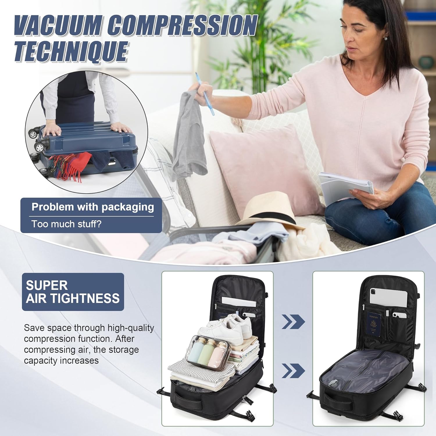 The dimensions may be very appropriate for private objects of airways:Journey with confidence! This backpack has been professionally designed and measures 18.5 inches x 12.6 inches x 8.6 inches (47 * 31 * 22 centimeters), assembly the strict seat measurement necessities of all main US airways reminiscent of Delta Air Strains, United Airways, and Southwest Airways. Its environment friendly vacuum compression ensures that you just take advantage of your packaging area