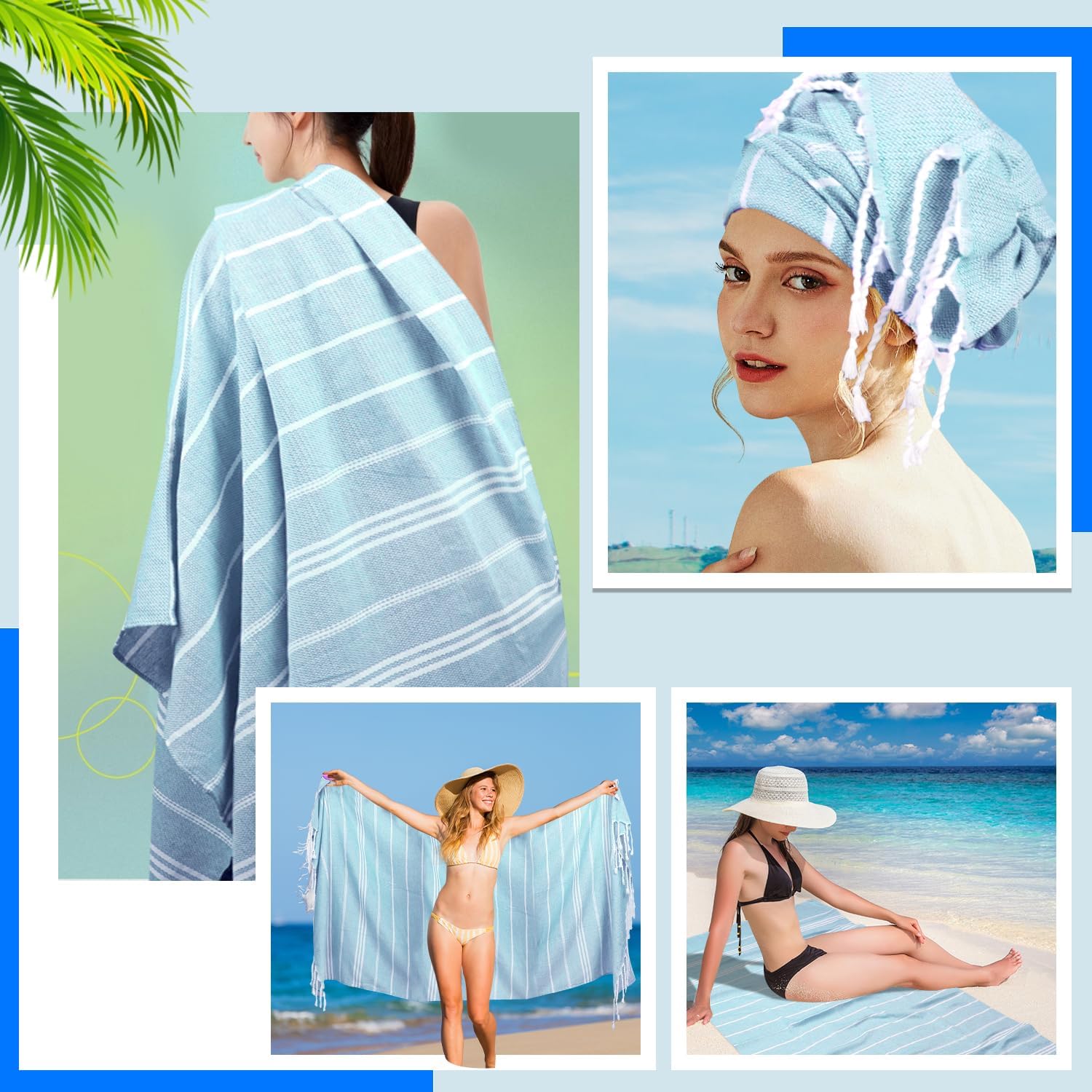 The YSYJ Turkish Beach Towel 6 Pack delivers a refined beach experience with six oversized towels crafted for comfort, practicality, and everyday use. Designed in the traditional Turkish style, these towels combine lightweight convenience with superior absorbency, making them ideal for beach trips, poolside lounging, or even as soft bath towels at home. Each towel measures 36″x71″, offering generous coverage that suits adults comfortably. The high-quality cotton fabric feels exceptionally soft against the skin, while its unique weave allows sand to shake off effortlessly—ensuring minimal cleanup after your day by the water. Whether you’re packing for a vacation or stocking up for family outings, this 6-pack provides reliable performance and lasting value.